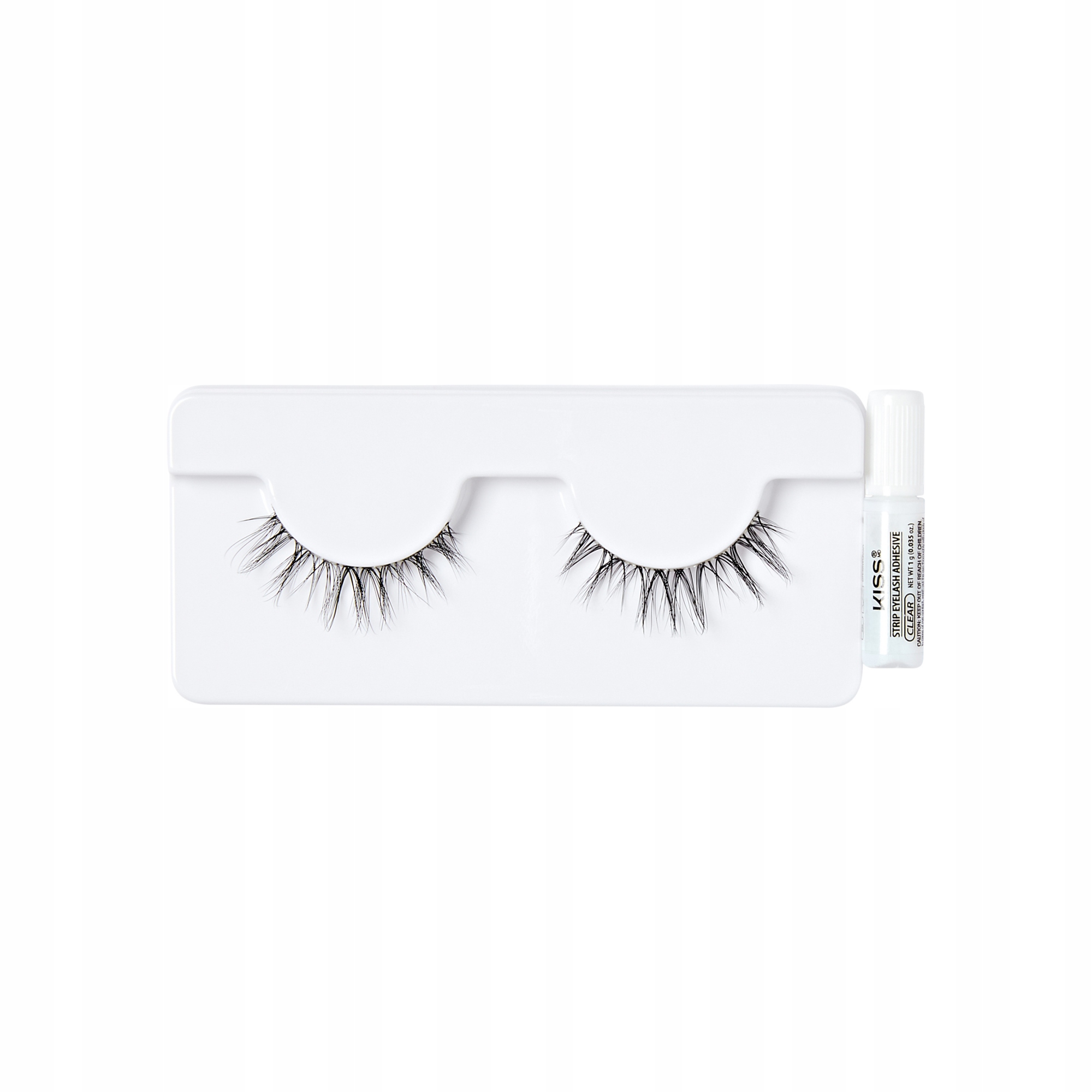 Перевірте посадку, обріжте, якщо необхідно. Нанесіть клей Kiss на вії, зачекайте 30 секунд і прикріпіть вії до природної лінії вій.