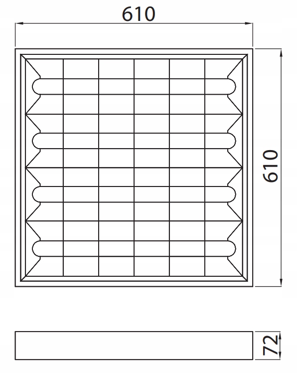 - Розміри (довжина/ширина/висота): 610/610/72 мм .