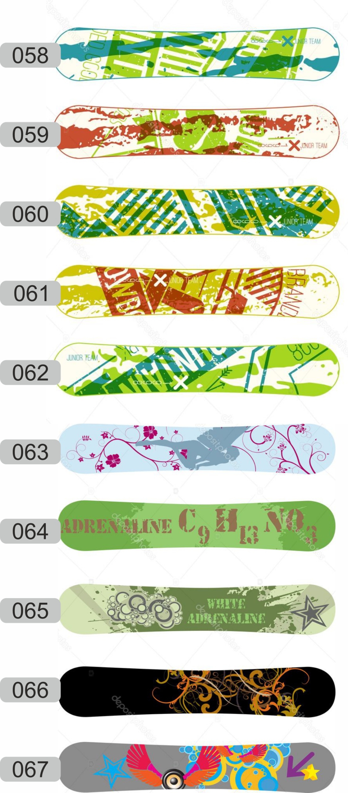 Наклейка для сноуборду - ламінат - багато візерунків