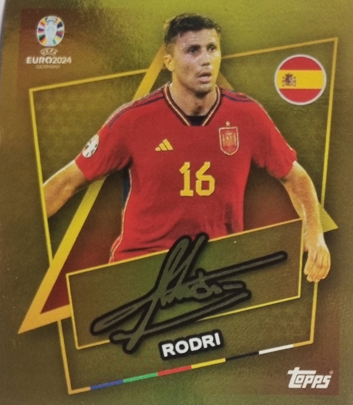 Наклейка EURO 2024 TOPPS MATCH ATTAX GOLD SIGNATURE ESP SP RODRI SPAIN