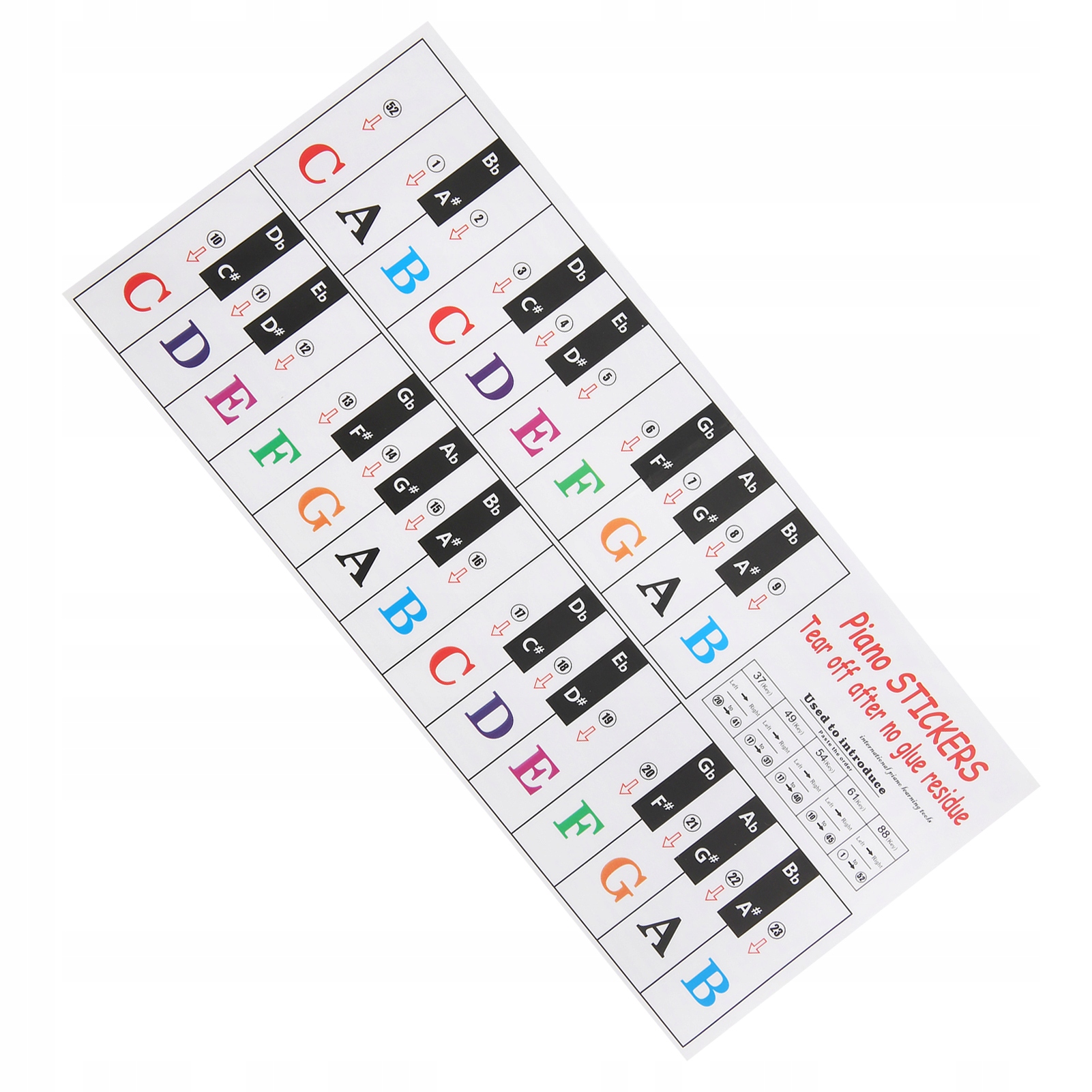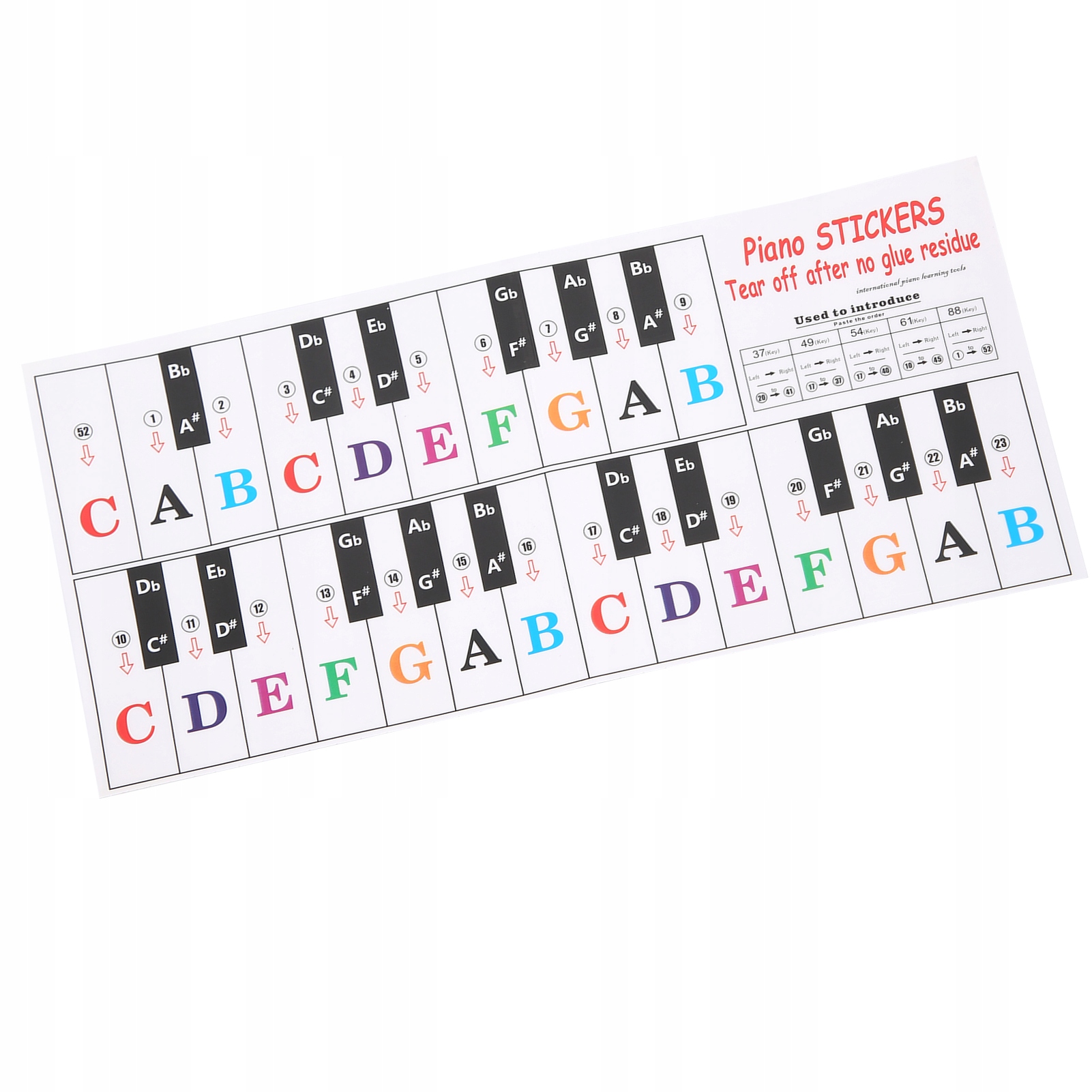 5. Літери та цифри на наклейці кольорові та дуже великі, підходять для дітей, які починають вчитися грати на піаніно.
