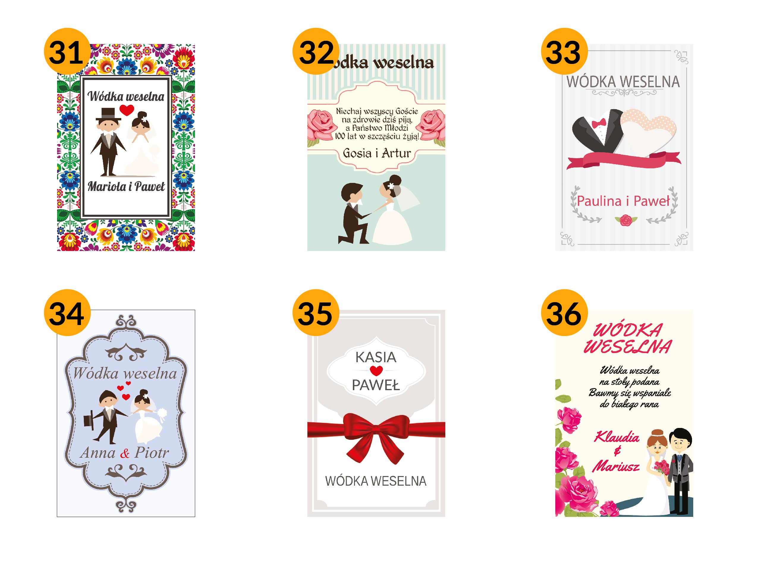 Наклейка на пляшку весільної горілки 57 дизайнів