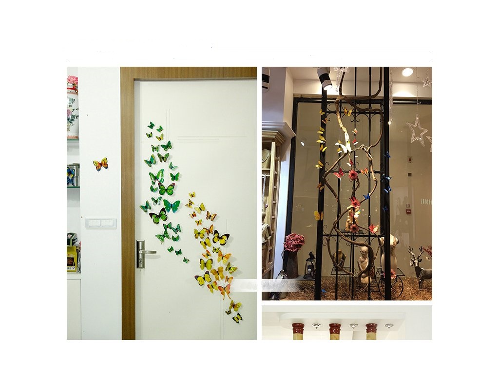 - метеликів можна приклеїти на стіну завдяки двостороннім наклейкам, що входять у комплект, або на металеві елементи завдяки вбудованому магніту.