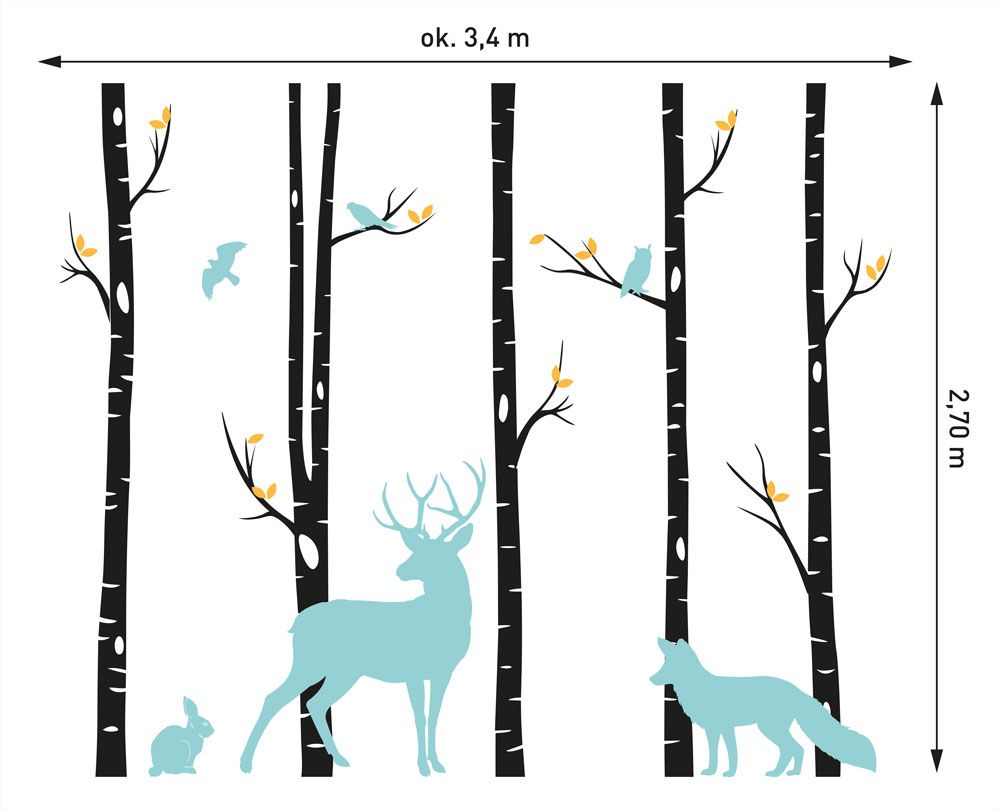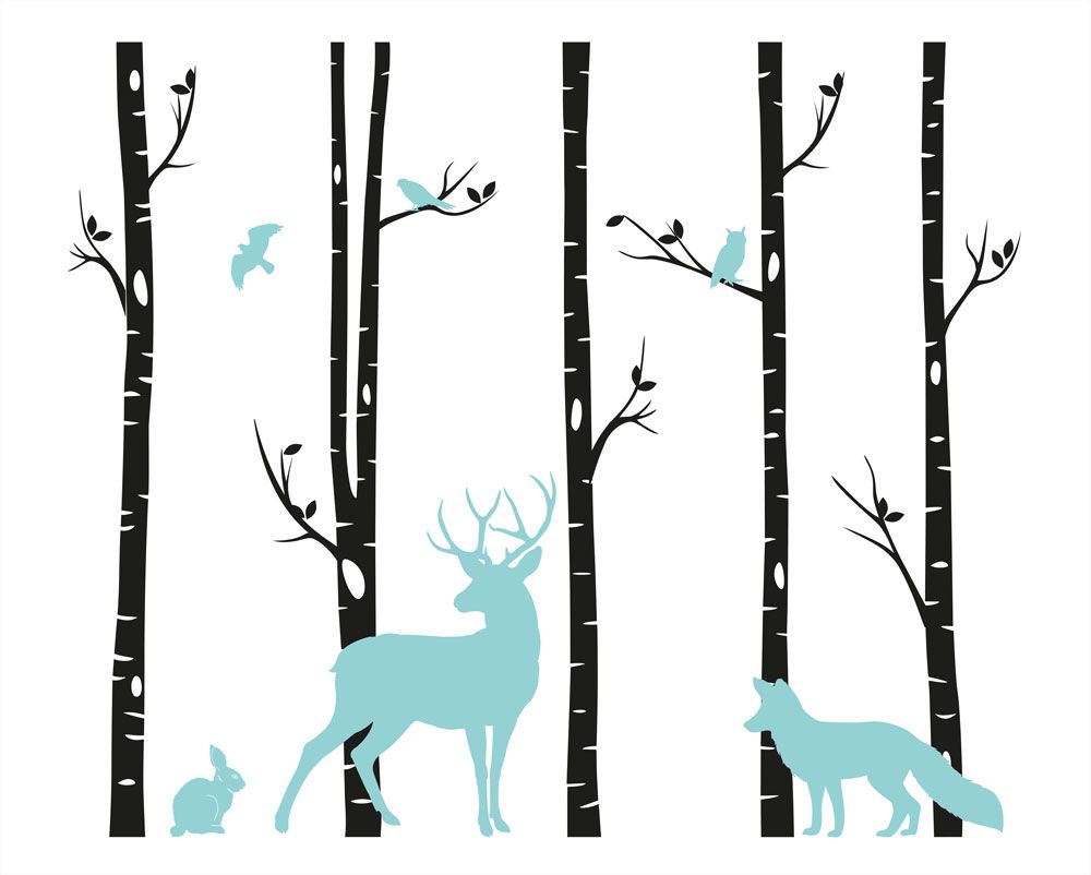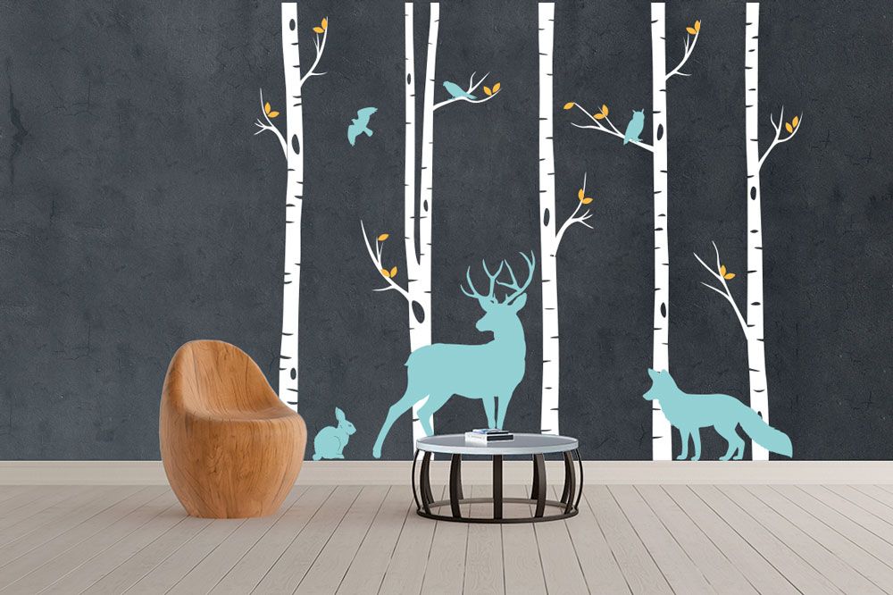 Наклейка на стіну БЕРЕЗИ дерево + тварини! 270 см