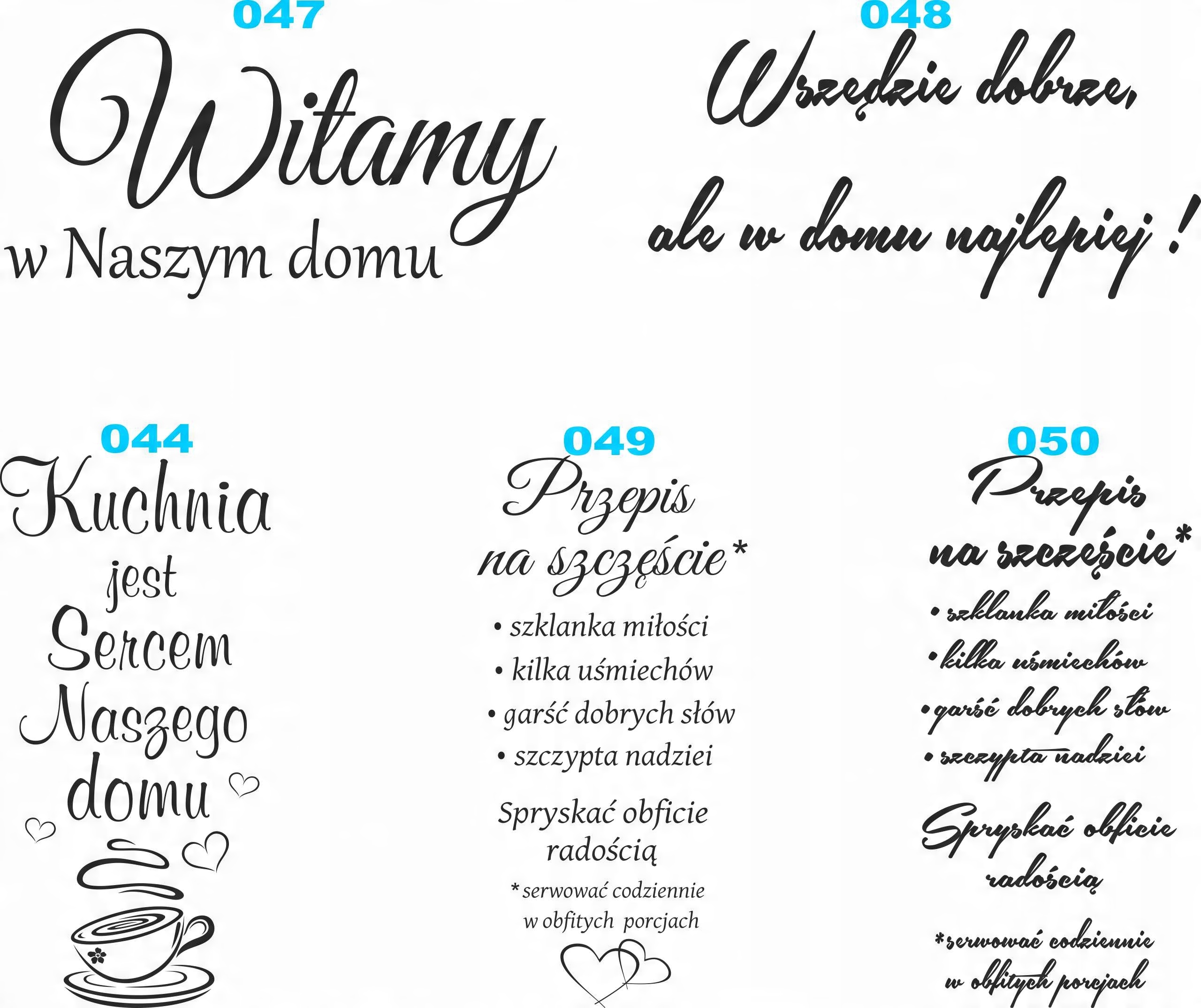 Наклейки виготовлені з високоякісної самоклеючої матової фольги, вирізаної на професійному плотері. Транспортний папір розміщений на наклейці, що робить монтаж надзвичайно простим і точним. Поверхня, на яку вони наклеюються, повинна бути рівною, сухою і знежиреною. Ми можемо використовувати наклейки на: стінах, меблях, вікнах, автомобілях, дзеркалах, плоских поверхнях.