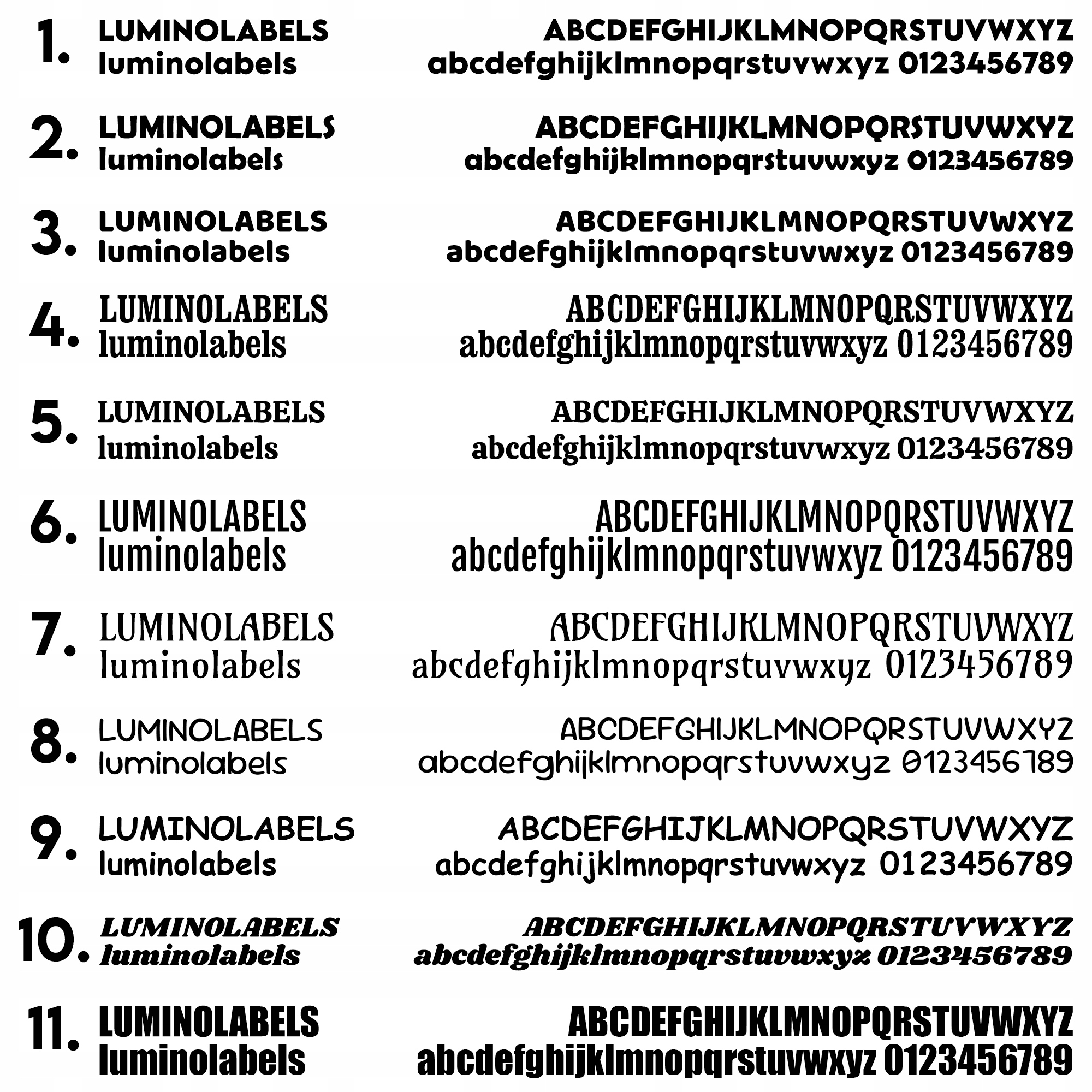 При замовленні напису вказуйте номер або назву шрифту. Якщо ця інформація відсутня, номер шрифту. 1 буде використано.