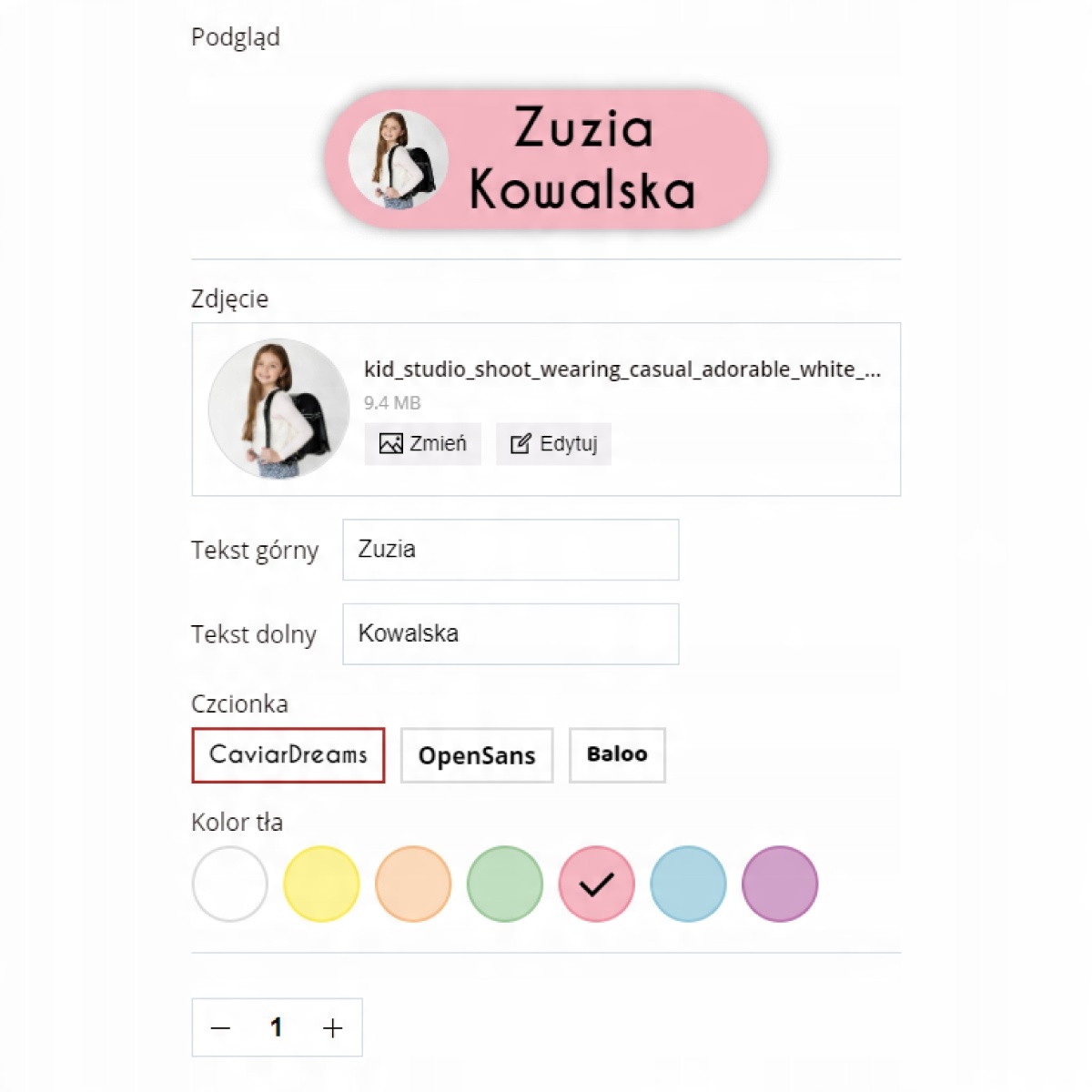 Після покупки скористайтеся простим творцем, щоб заповнити будь-який текст на наклейці та додати фотографію дитини або власну графіку.