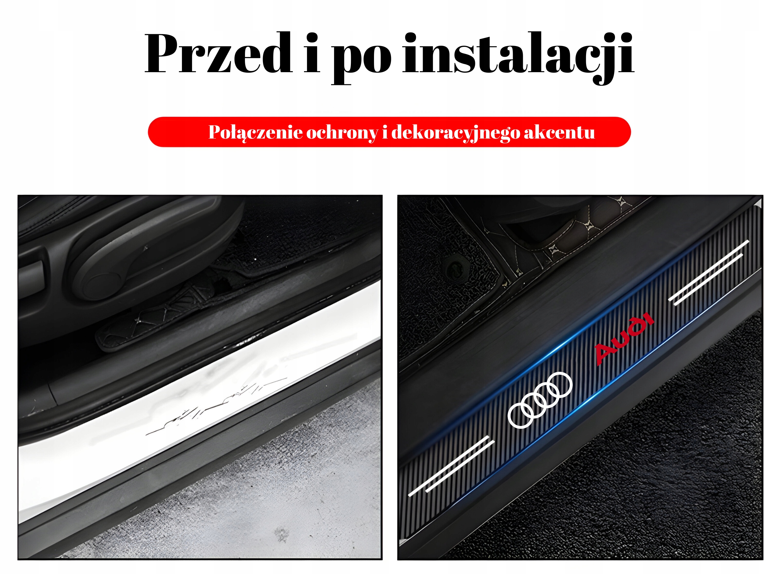 Захисна плівка захистить накладки порогів від подряпин та інших пошкоджень, які можуть виникнути при посадці в автомобіль. Він також може закрити існуючі подряпини.