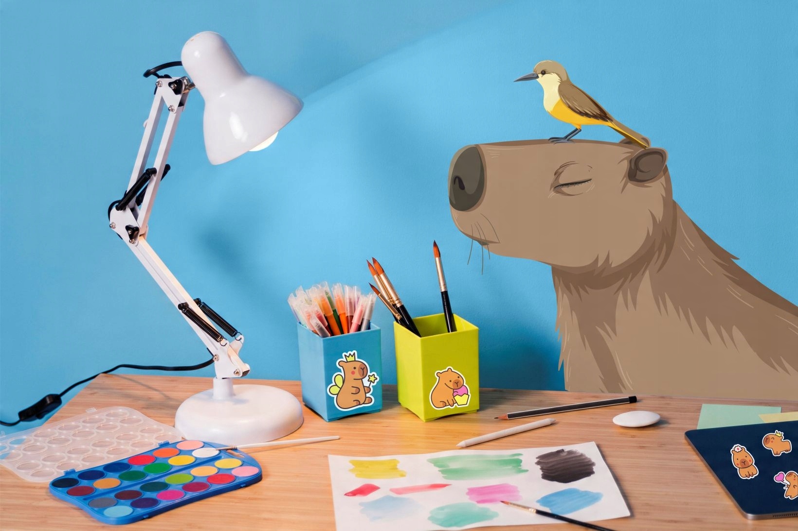 Набір із 150 унікальних унікальних наклейок, які додадуть радості та гумору вашим предметам. Набір представляє капібар у веселих і креативних позах, готових оживити будь-який об’єкт і простір і підкорити серця дітей.
