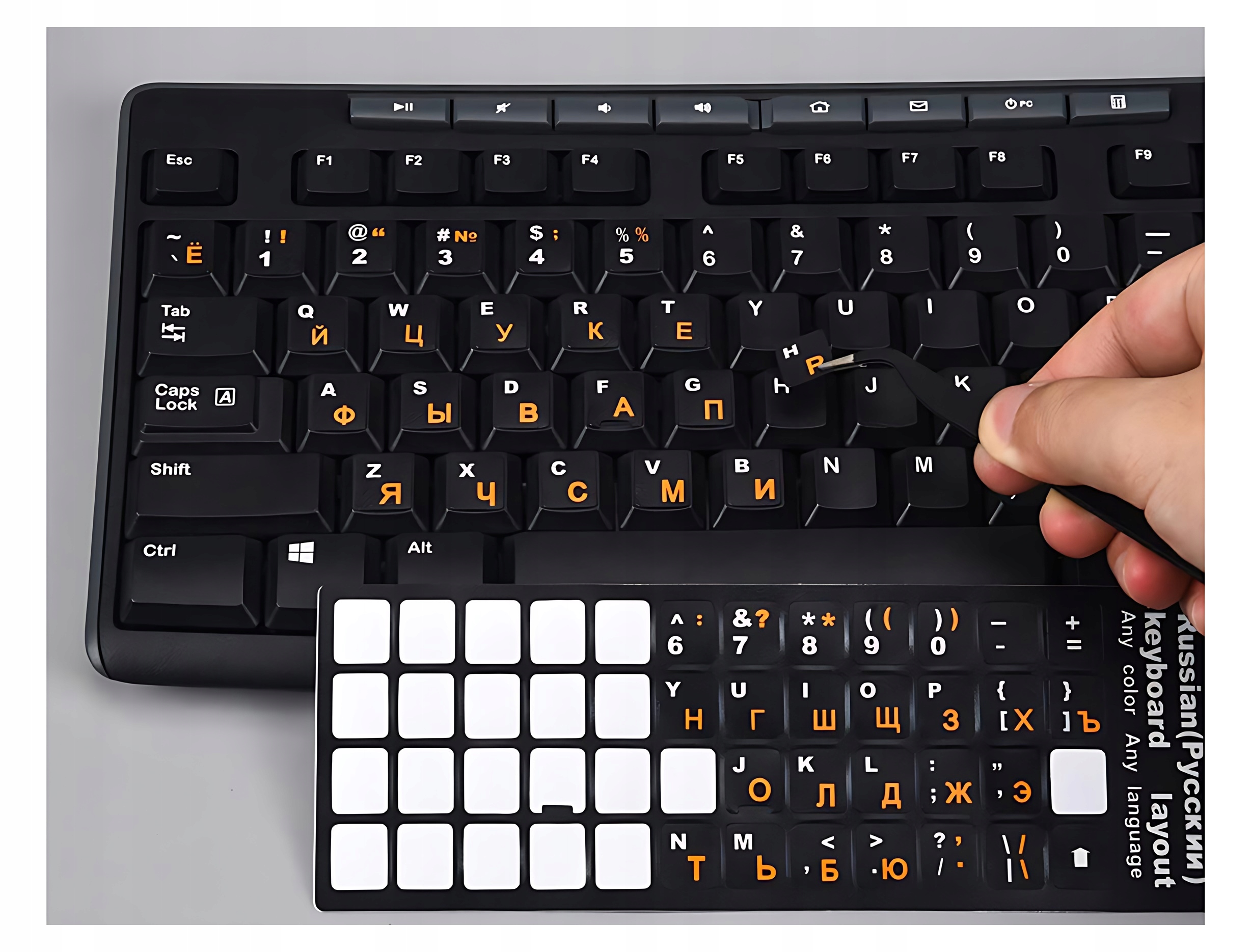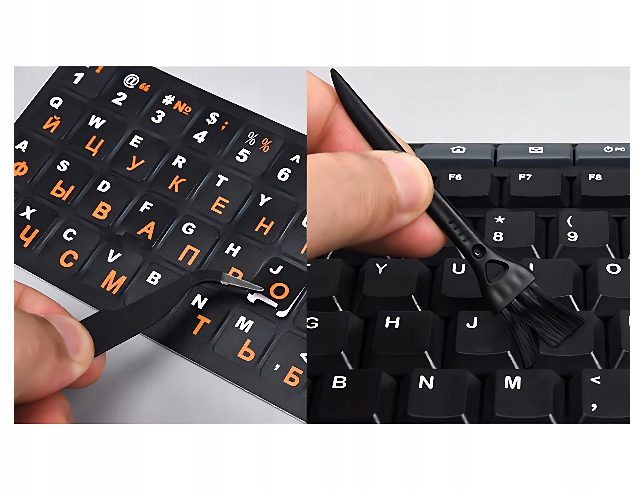 Сильний клей означає, що наклейки не відшаровуються і не рухаються -навіть при тривалому та інтенсивному використанні. Клавіатура з Cyrillica - Завдяки наклейкам ви досягнете такого ж ефекту за частку ціни .