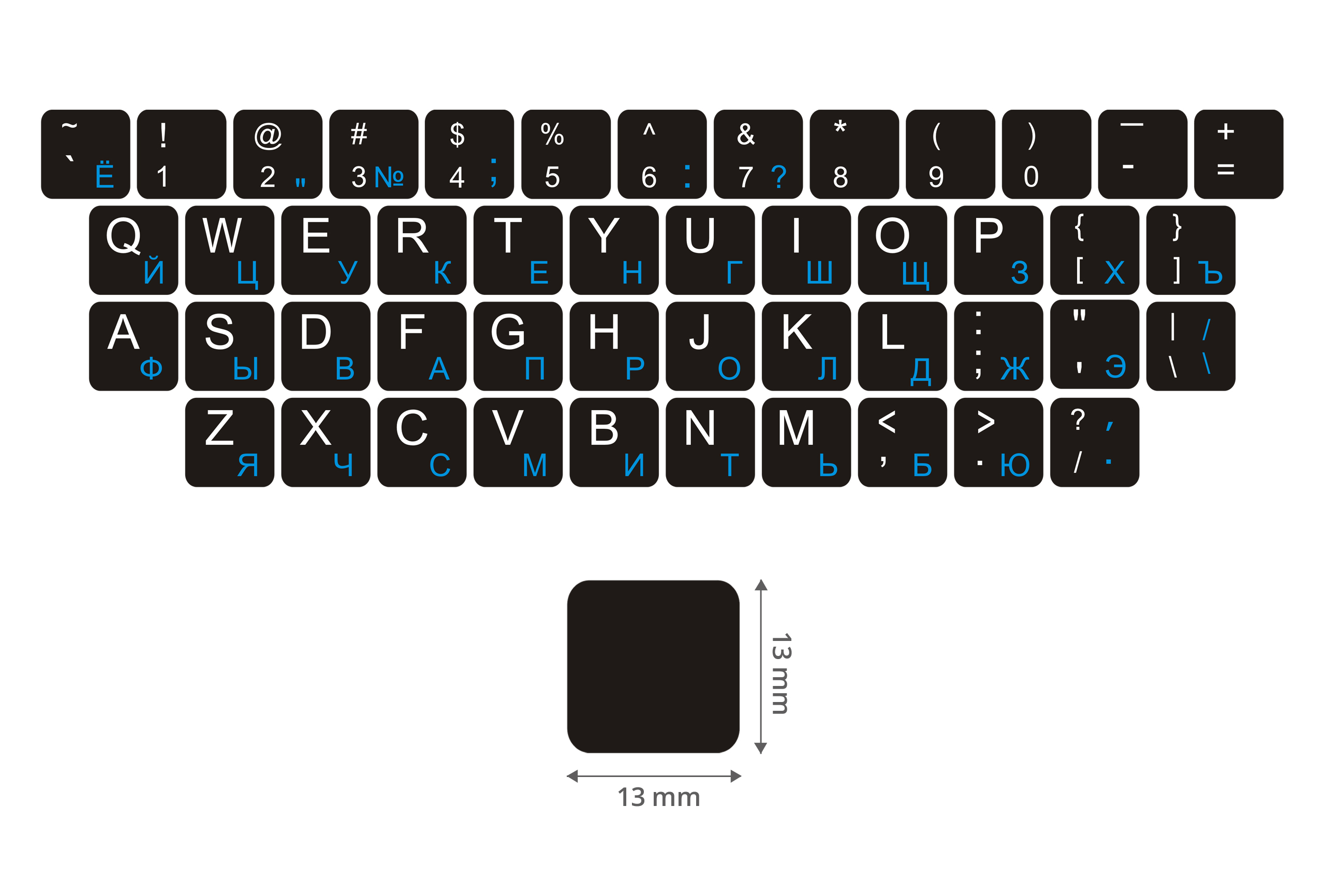 Наклейки для клавіатури QWERTY + КИРИЛИЦЯ 13х13 мм