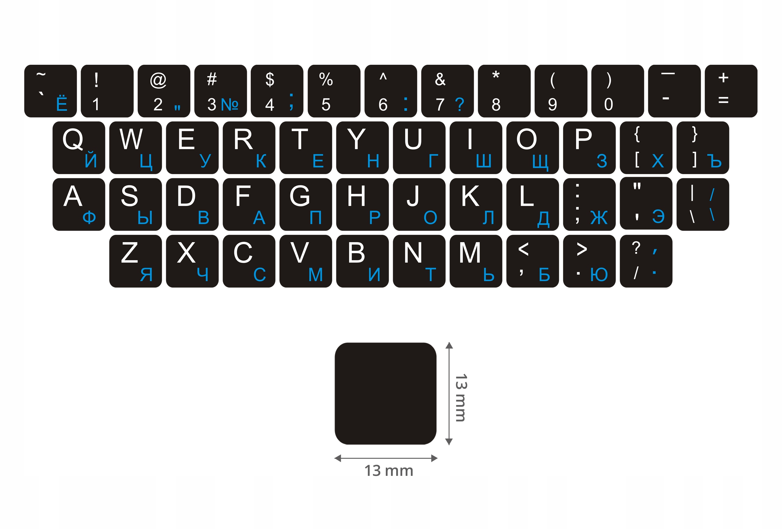 Наклейки (клавіші) на клавіатуру QWERTY + КИРИЛИЦЯ 13х13 мм