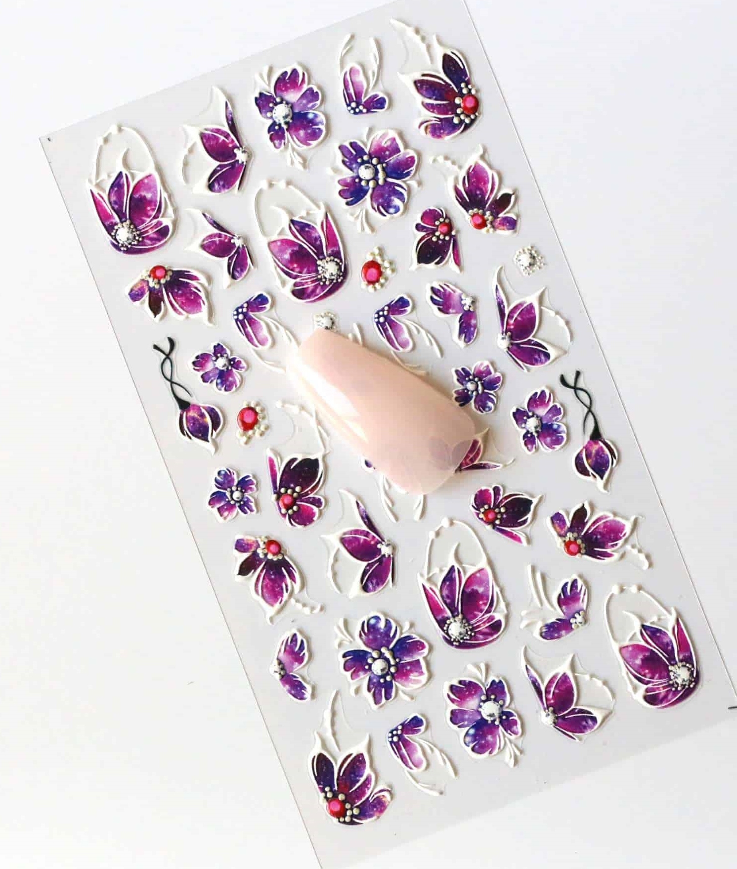 Наклейки для клею для нігтів білий і рожевий 5D пофарбовані квіти 5D-K045