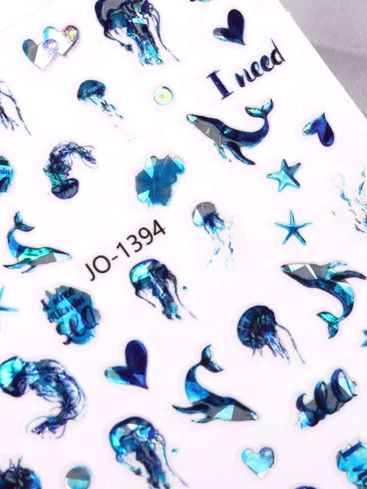 Наклейки для нігтів для манікюрної морської медузи кит -зірки