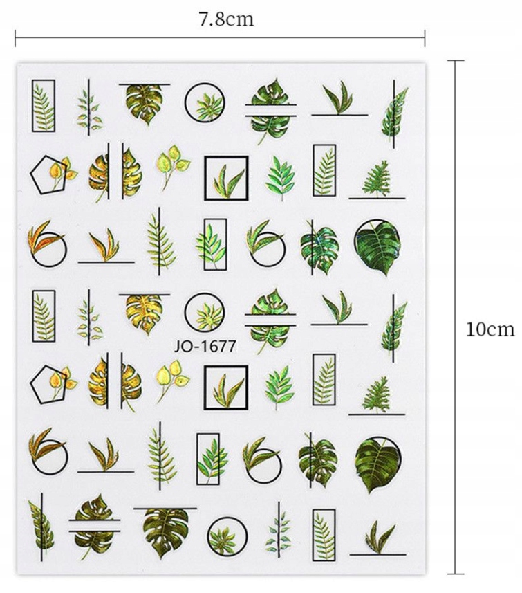 Оригінальні наклейки на нігтів з мотивом листя дозволять отримати швидку та унікальну стиль для нігтів. Простий спосіб використання дозволяє створити чудові, унікальні дизайни на нігтях самостійно. Просто очистіть обраний візерунок і дотримуйтесь пофарбованого нігтя. Цілого достатньо для захисту з вершиною.