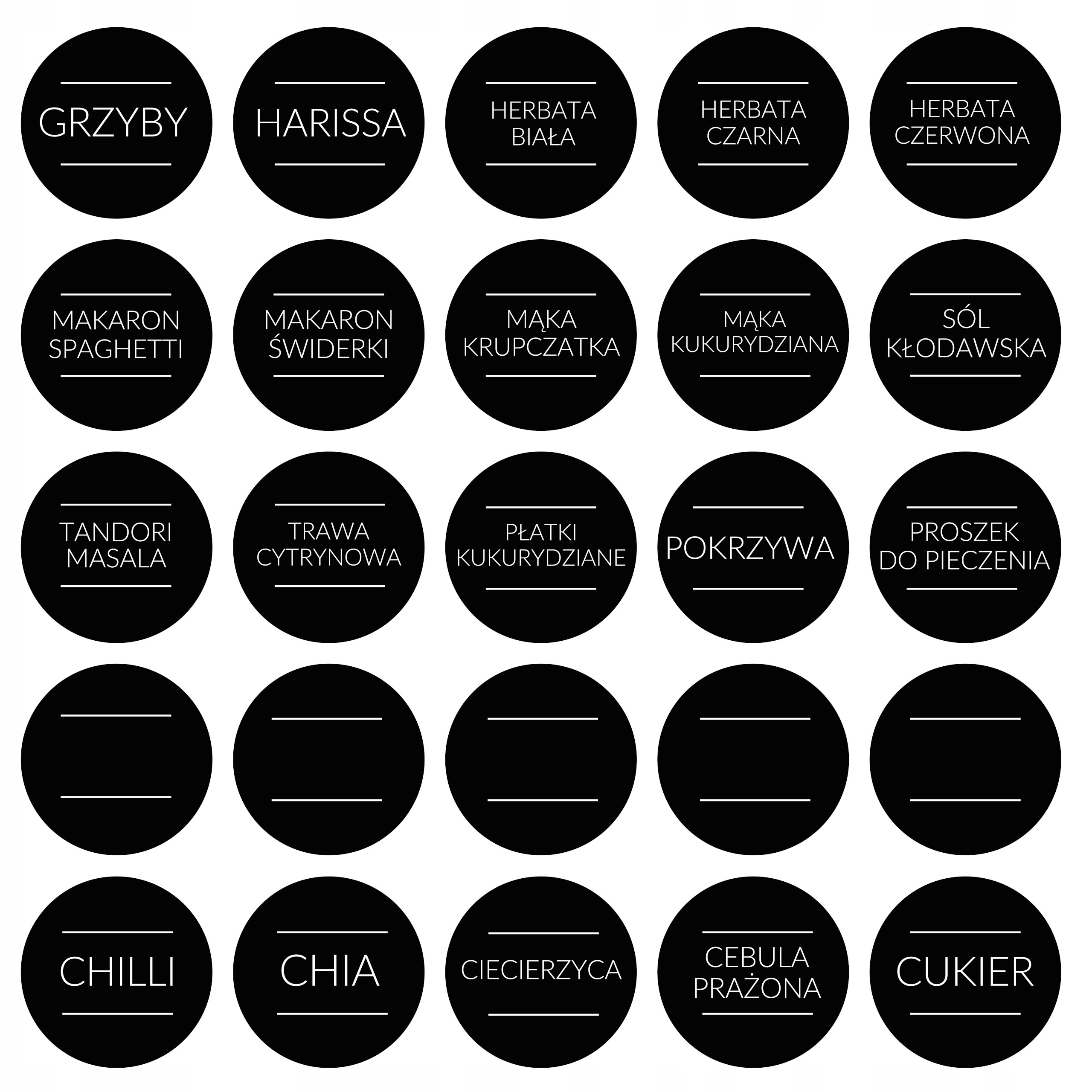 Наклейки виготовлені методом цифрового друку на глянцевій фользі, що забезпечує їх водонепроникність. Наклейки маютьміцний клей, який забезпечує тривале використання. Діаметр наклейок адаптовано до баночок для спецій (щоб наклейка містилася на кришці). Завдяки нашим наклейкам ваші спеції будуть упорядковані, а ваша робота на кухні стане ефективнішою.