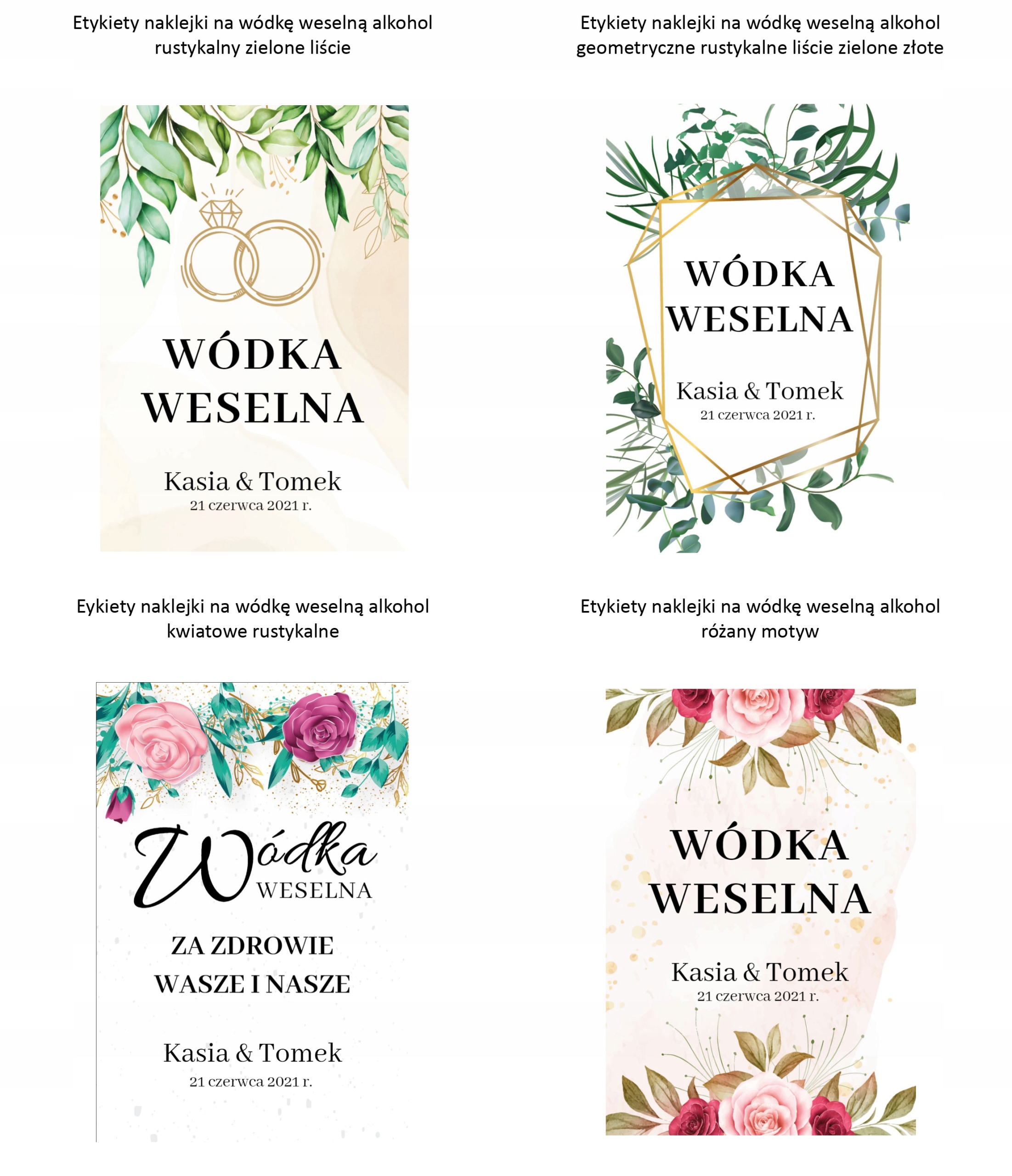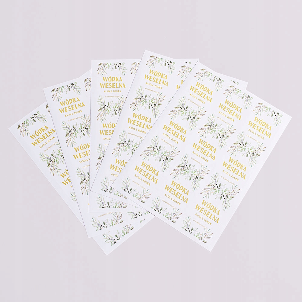 Етикетки наклейки на весільну горілку спиртову, набір 45 штук