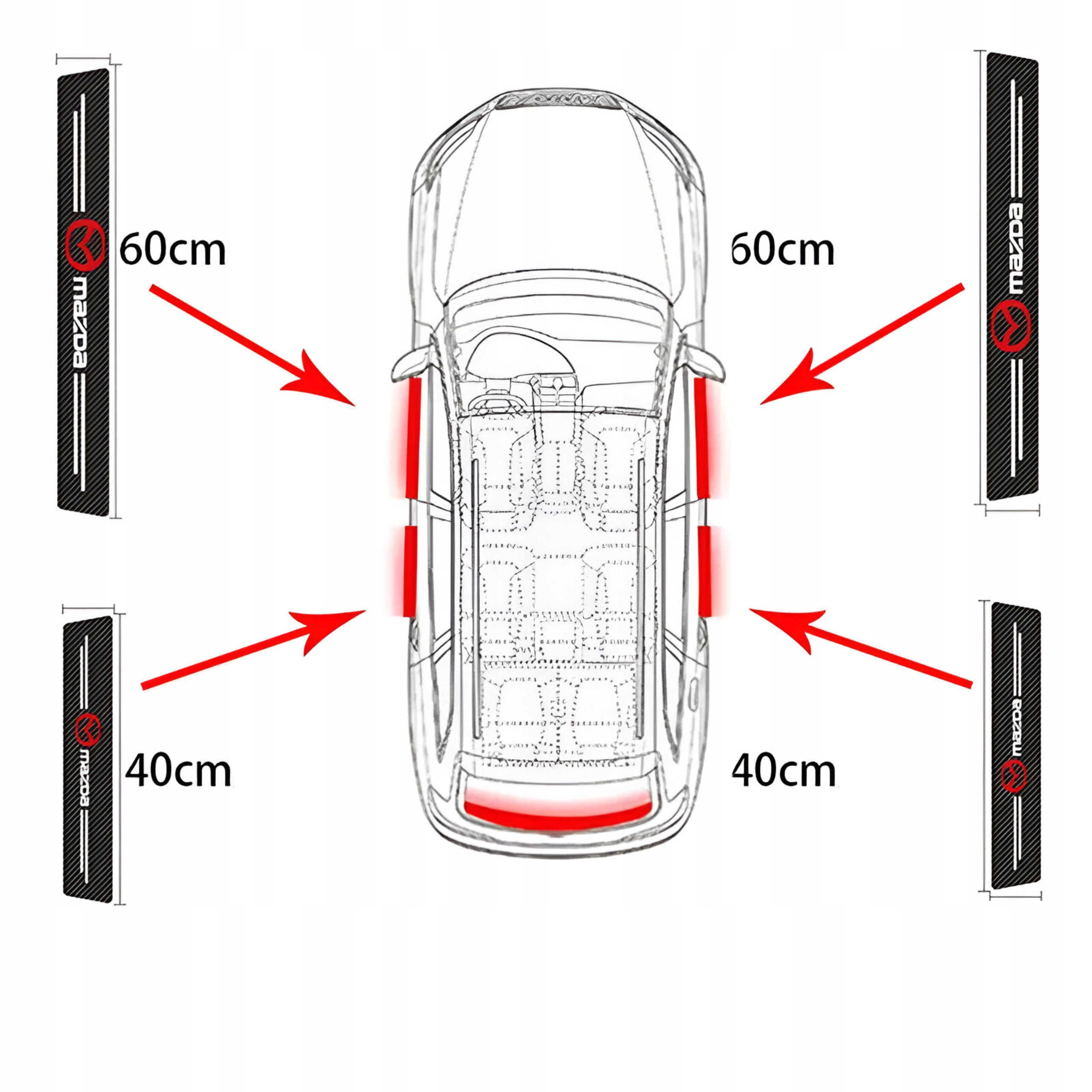 НАКЛЕЙКИ MAZDA STRIP ЗАХИСНА ФОЛЬГА НА ПОРОГИ 4 шт.