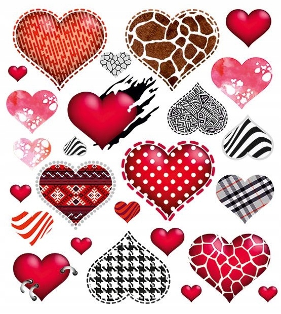 Наклейки «Сердечка» - виріб, виготовлений за технологією DTF. Наклейки складаються з двох тонких шарів, вони тонші, ніж наклейки Foil Flex, але однаково міцні та розтягуються. Відрізняє ці наклейки багатобарвність, форми та візерунки, які неможливо отримати за допомогою технології Flex, наприклад, спіралеподібні написи, дрібні вузькі смужки тощо. У свою чергу, ці наклейки не мають прикрас, таких як блискітки чи відблиски, але відповідно їх ціна нижча. ніж у випадку з пластирами Flex.