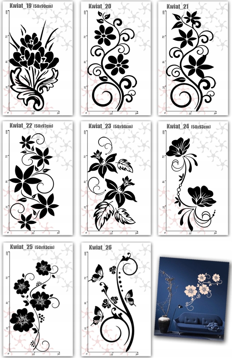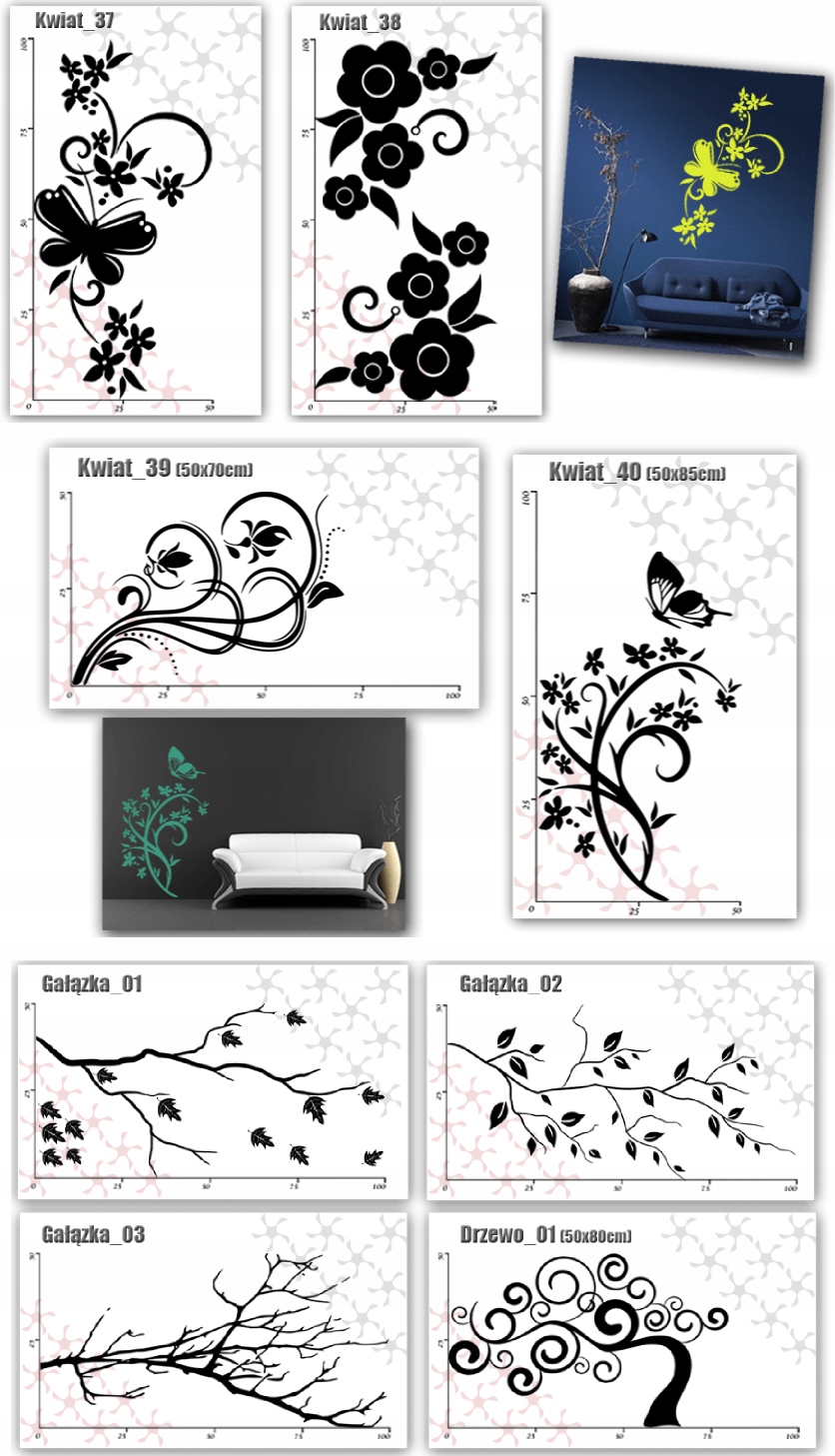 НАКЛЕЙКИ на стіну КВІТИ метелики МЕТЕЛИК 50х100см L