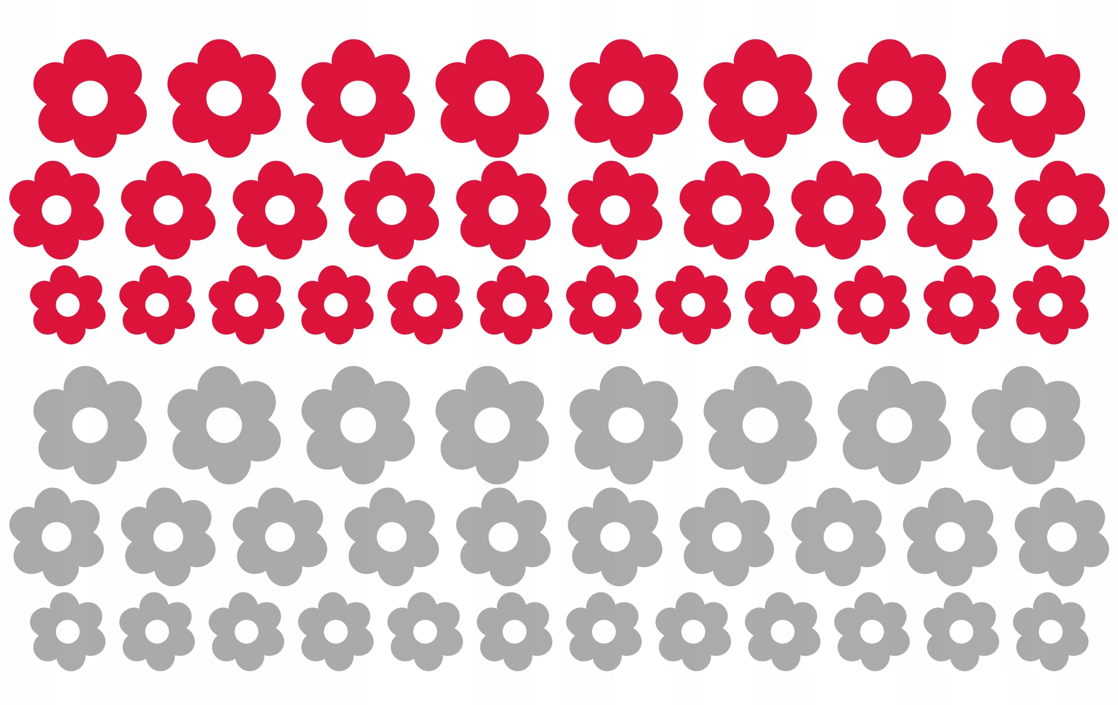 на аркуші 30 штук квітів, у тому числі 12 штук діаметром 2 см, 10 штук діаметром 2,5 см і 8 частин діаметром 3 см