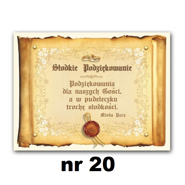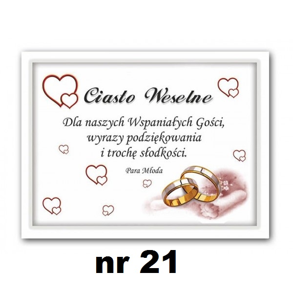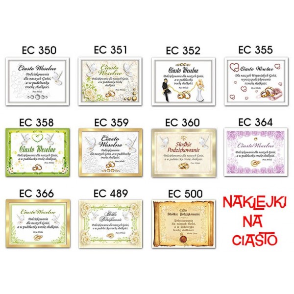 Оплачивая «Наклейки на весільний торт 9 дизайнів / 20 NAKC», вы можете быть уверены, что данный товар из каталога «Этикетки и бирки для алкоголя» будет доставлен из Польши и проверен на целостность. В цене товара, указанной на сайте, учтена доставка из Польши. Внимание!!! Товары для Евросоюза, согласно законодательству стран Евросоюза, могут отличаться упаковкой или наполнением.