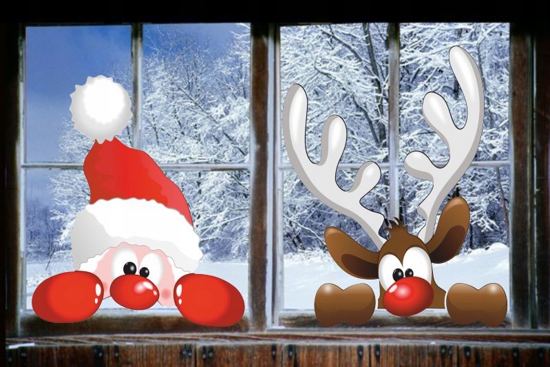 Наклейки на вікна Дід Мороз та Північний Олень, 50х35 см