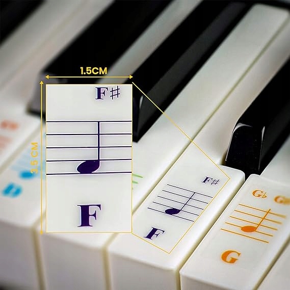 Наклейки Ноти для клавіш фортепіано Клавіатура піаніно Барвисті
