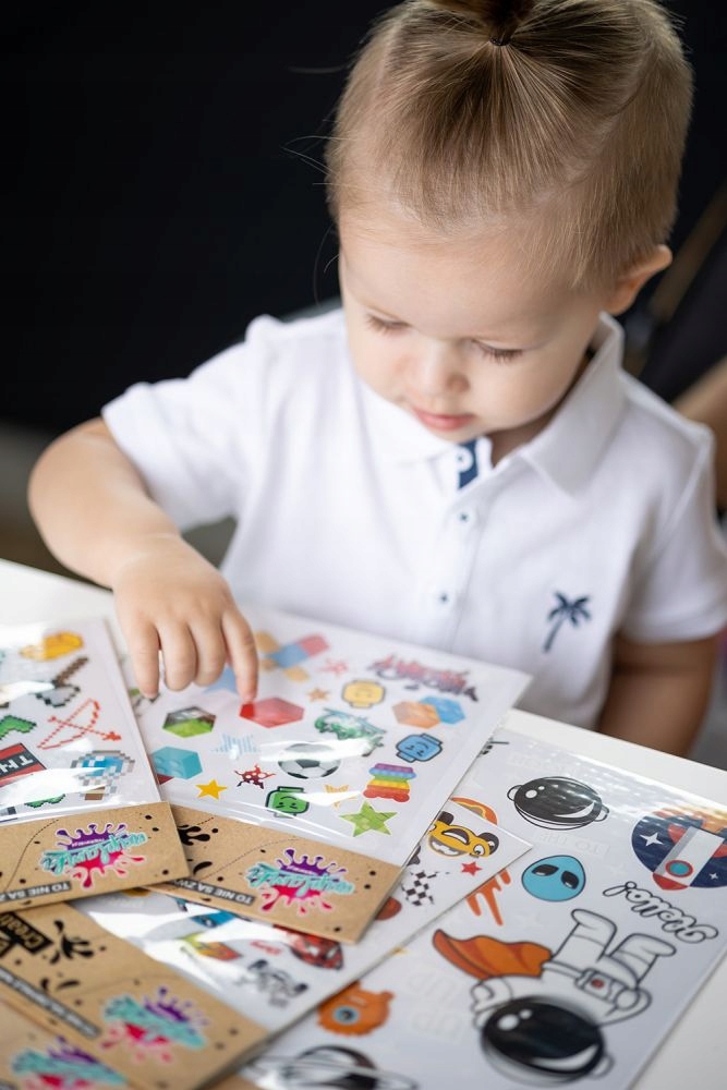 Ці наклейки виготовлені за технологією DTF. Наклейки складаються з двох тонких шарів, вони тонші, ніж наклейки Foil Flex, але однаково міцні та розтягуються. Відрізняє ці наклейки багатобарвність, форми та візерунки, які неможливо отримати за допомогою технології Flex, наприклад, спіралеподібні написи, дрібні вузькі смужки тощо. Ці наклейки не мають блиску та відблисків, але, відповідно, ціна їх нижча, ніж у футлярі. наклейок Flex iron-on. .