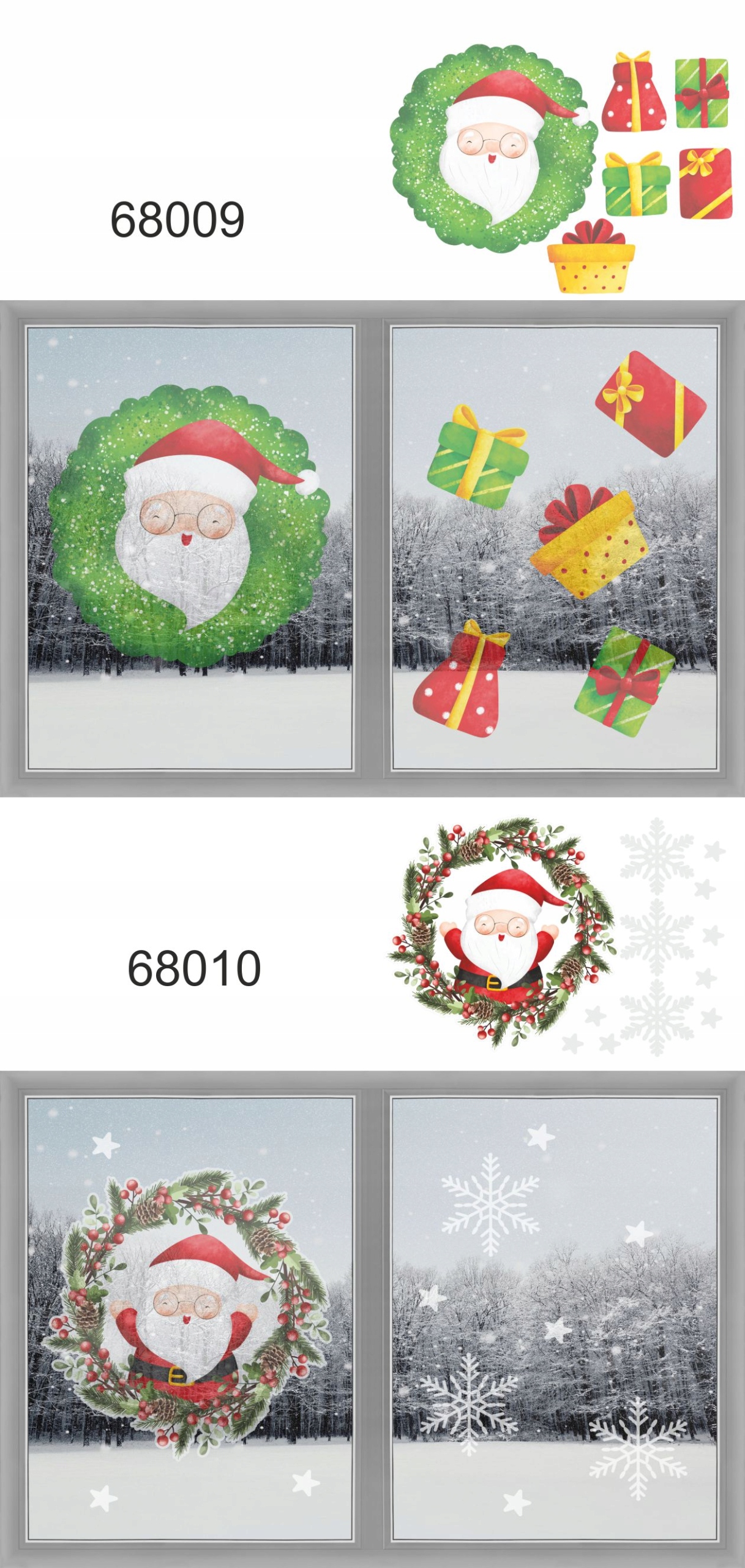 Тема продажу - це набори різдвяних наклейок для багаторазового використання , розміщених на аркуші 30 см х 100 см від безбарвної фольги, після того, як з іншого боку, прилипання до скла .
