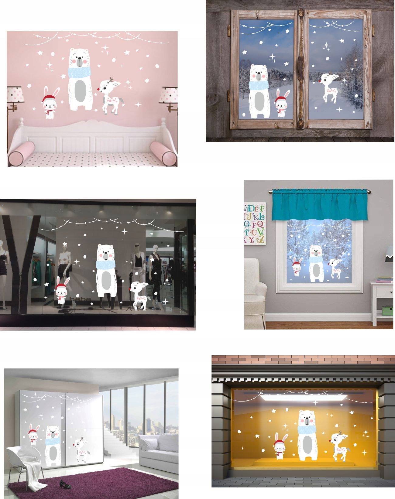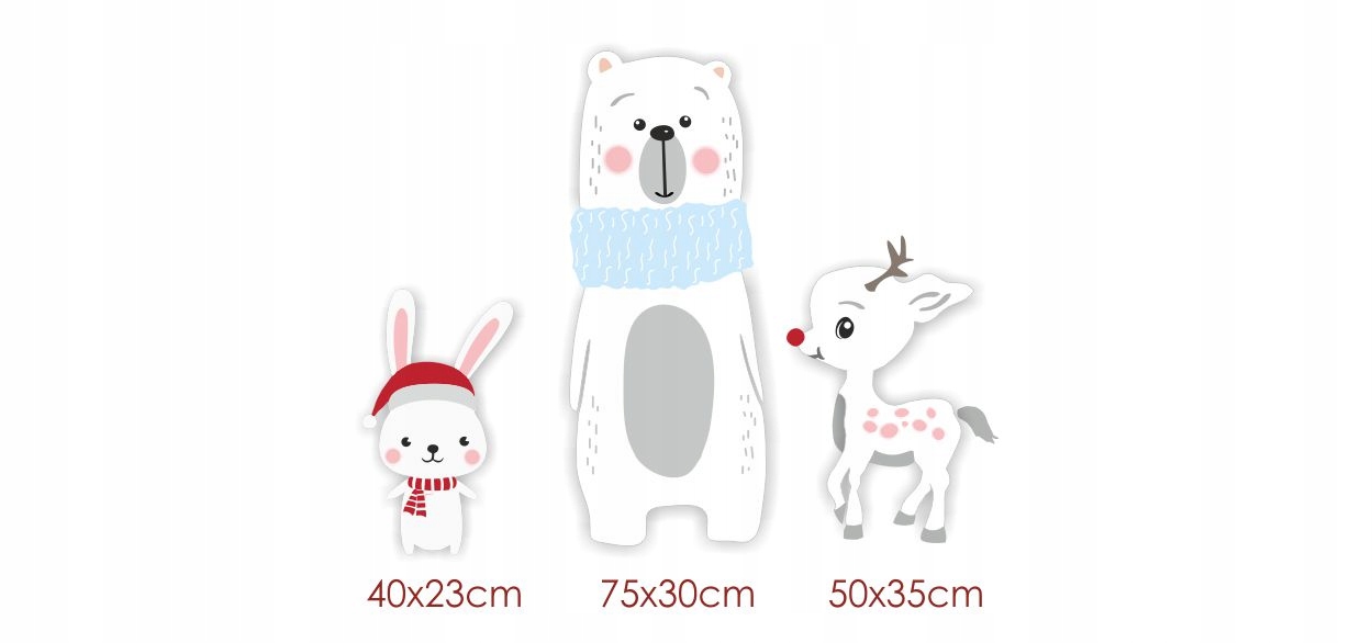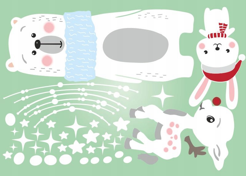 Різдвяна наклейка з плюшевим ведмедем, зайчиком та оленями