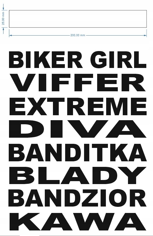 Це може бути ім'я, прізвисько, прізвисько, назва клубу, команда, мотоцикл, профіль Insta, що завгодно. Поле розміром 25 мм х 200 мм. Це означає, що ширина листів буде пропорційною кількості символів.