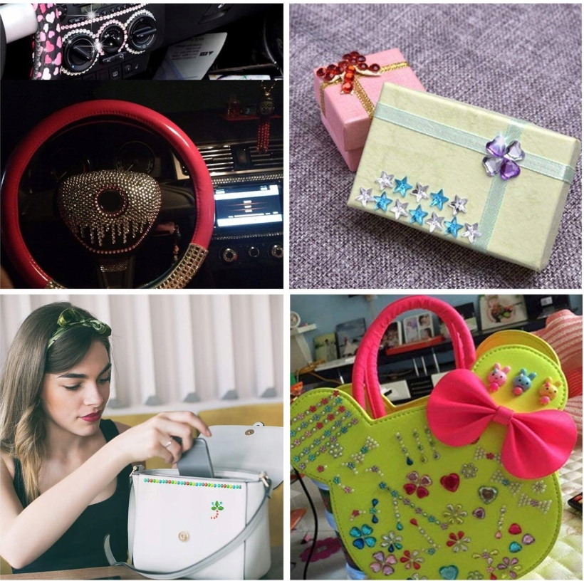 Самоклеючі наклейки зі стразами: Ці блискучі наклейки зі стразами зроблені з акрилу, блискучі та сяючі. Сильна адгезія зберігається протягом тривалого часу, не відпадає легко. Після відклеювання не залишиться залишків клею.