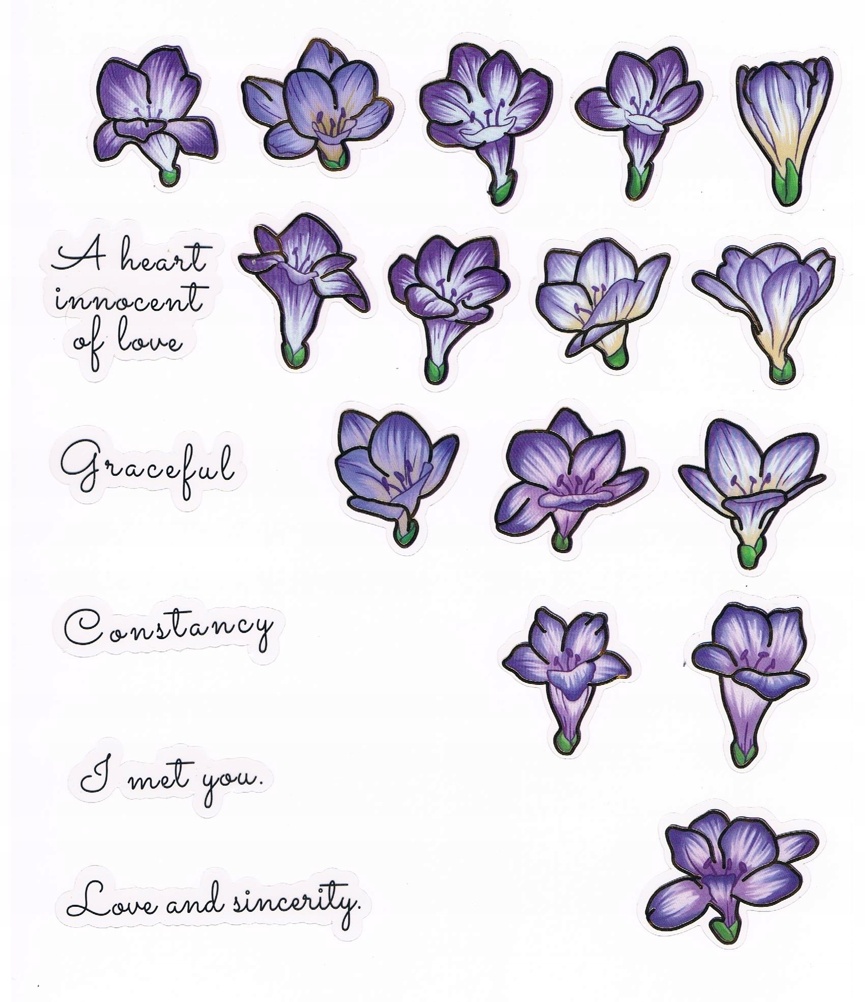 NAKLEJKI FOLIOWE SCRAPBOOKING 40SZT KWIAT FREZJA