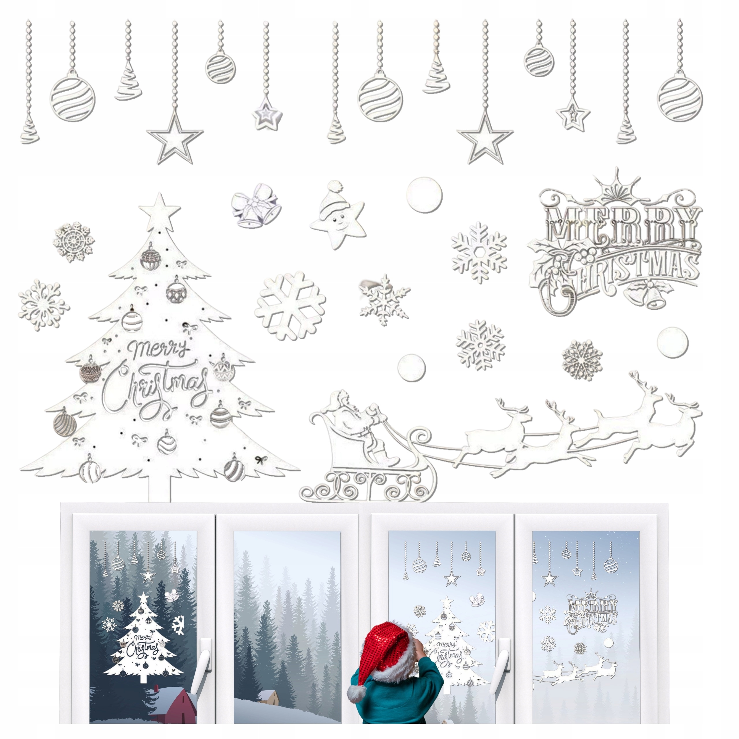 NAKLEJKI NA OKNO ŚWIĄTECZNE SZYBĘ ŚNIEŻKI BOŻONARODZENIOWE MAXI ZESTAW