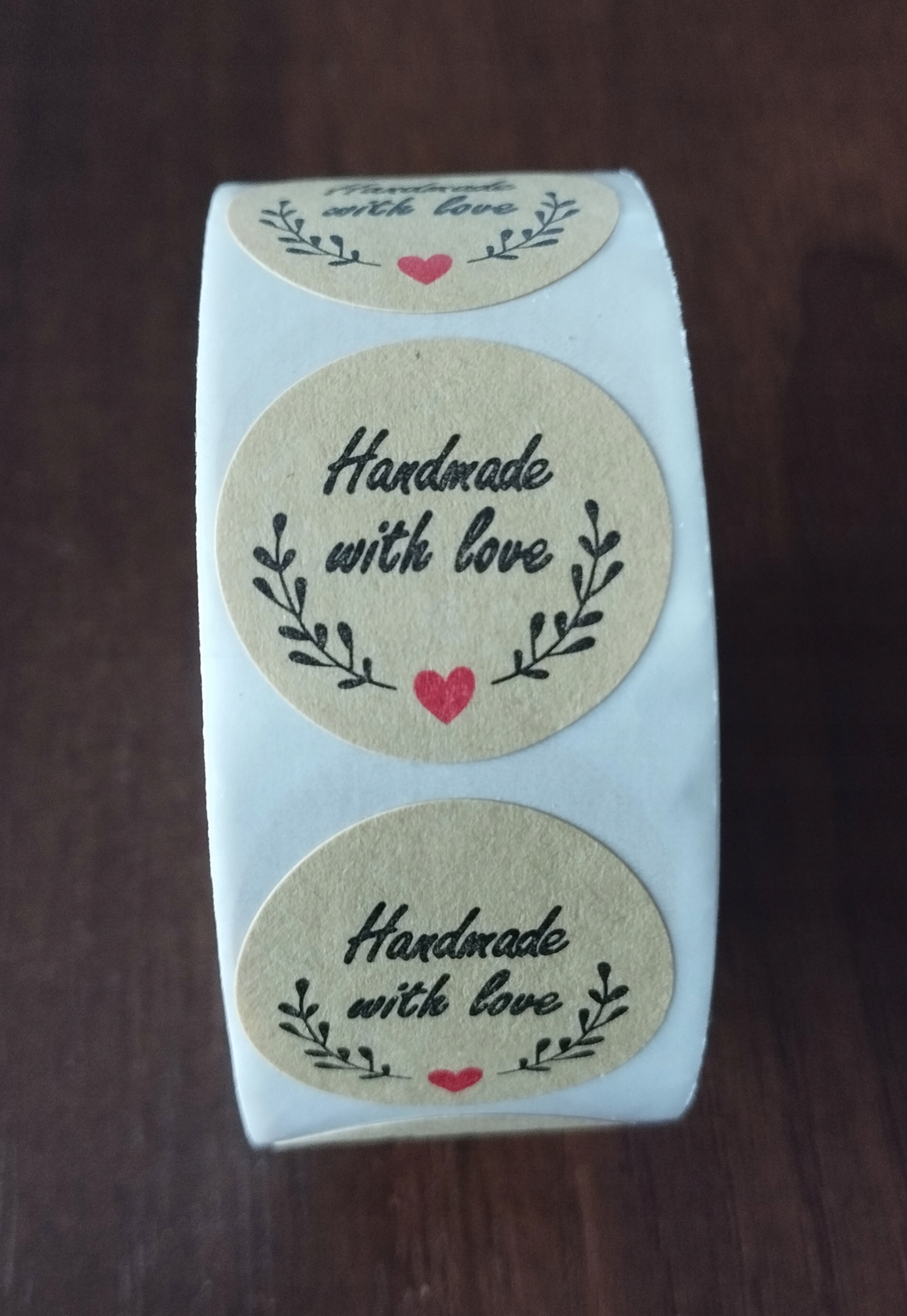 Naklejki okrągłe Handmade with love 25 mm 500 szt