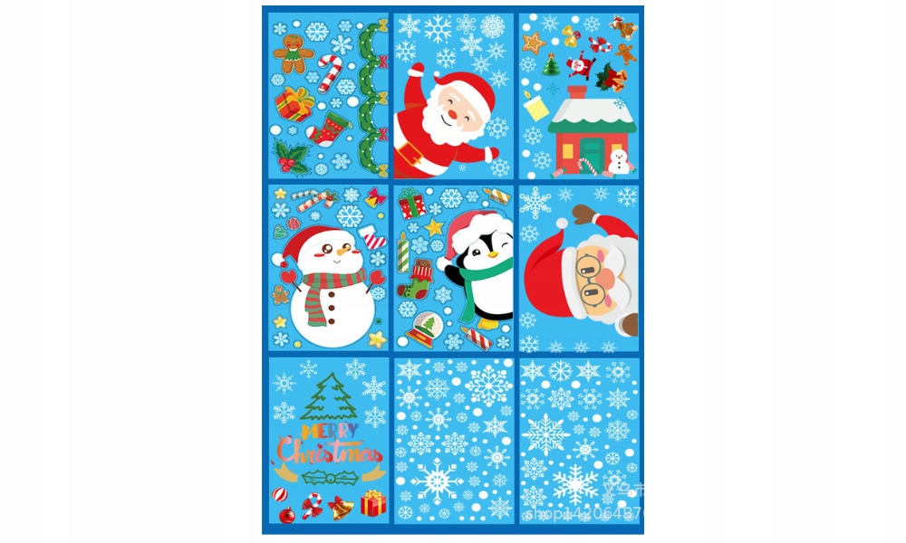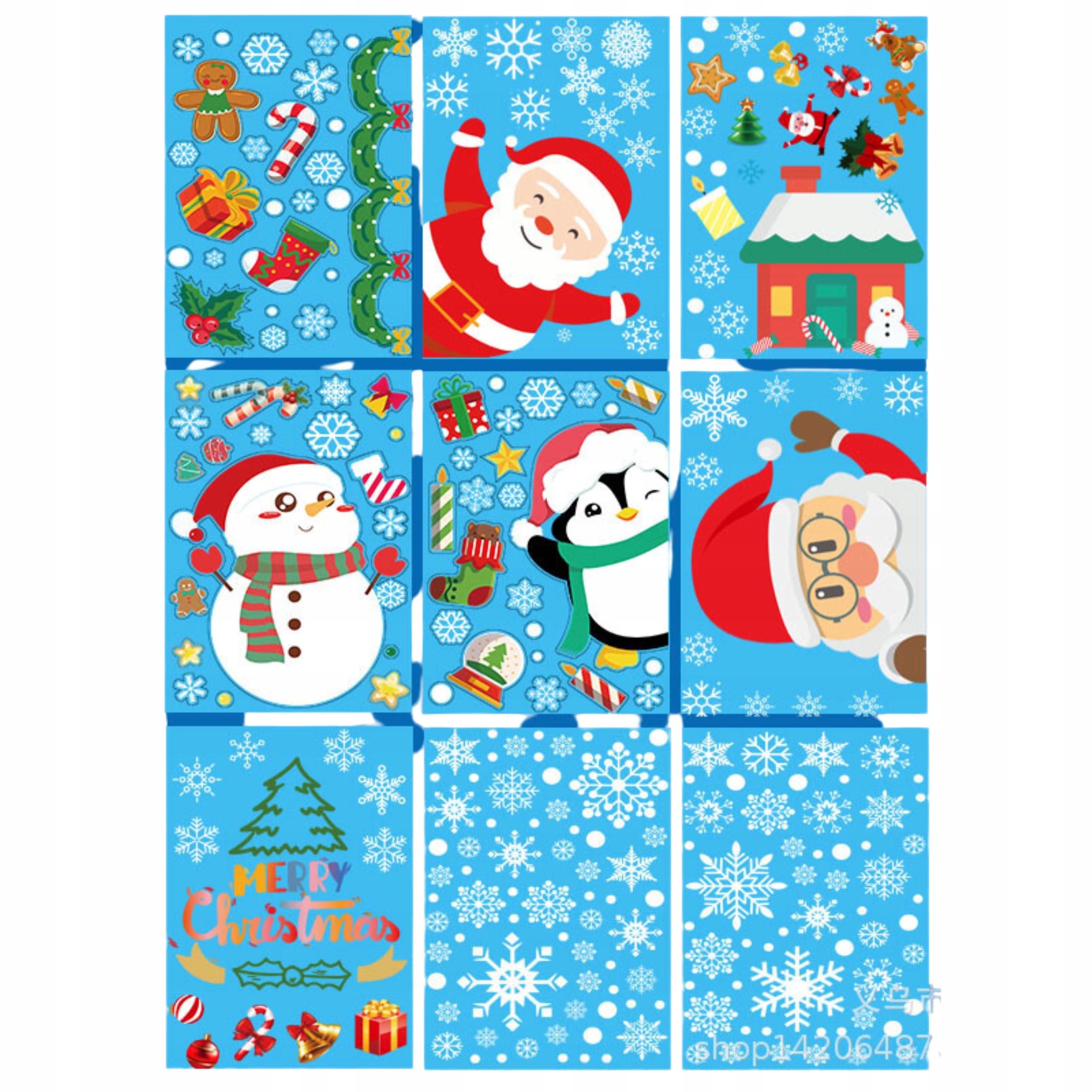NAKLEJKI ŚWIĄTECZNE OZDOBY NA OKNO SZYBĘ ŚNIEŻYNKI ŚWIĘTA 9 ARKUSZY