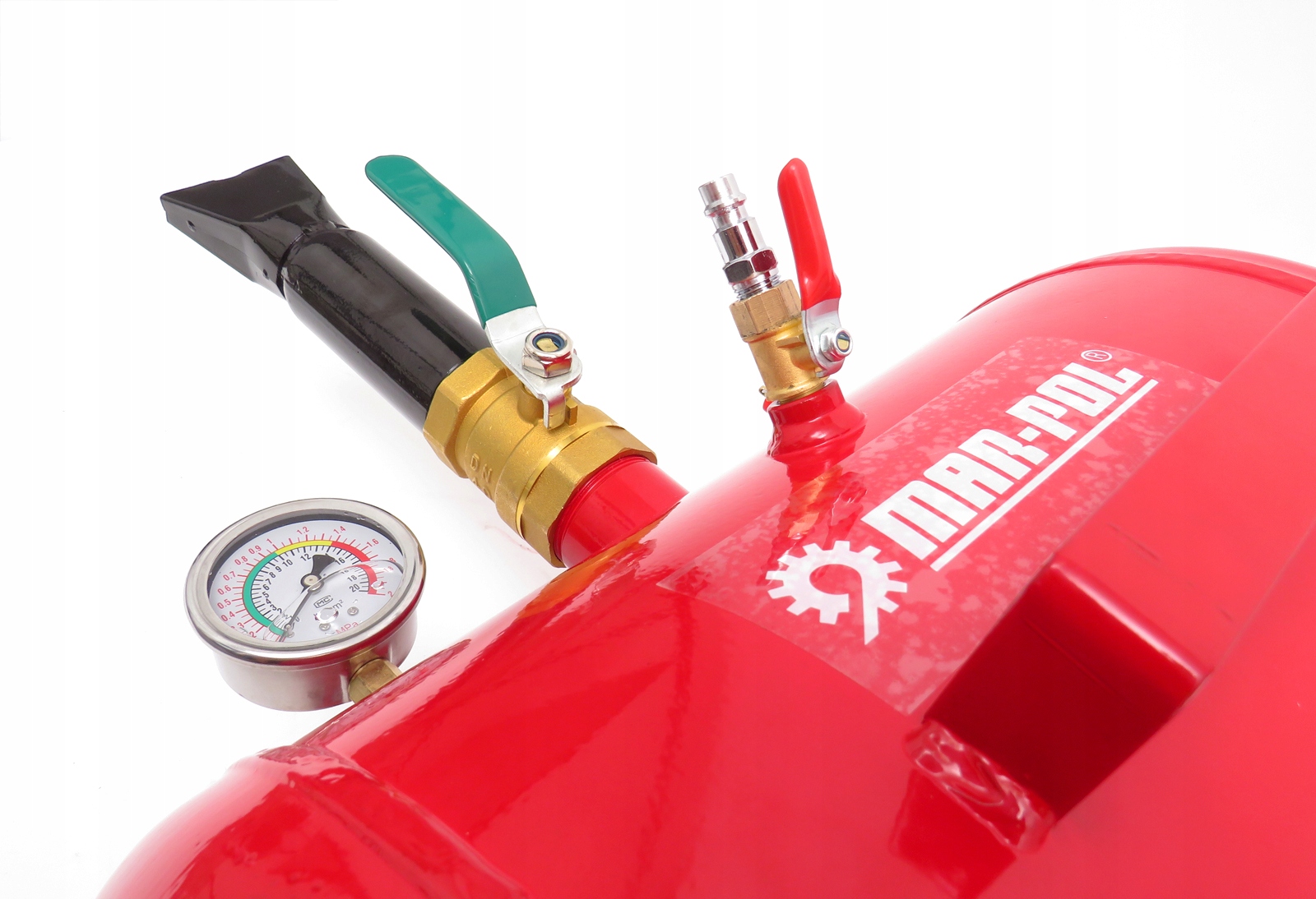 - Гліцериновий манометр з можливістю зчитування, градуйований у двох одиницях: Мпа (0-2) / кг/см2 (0-20).