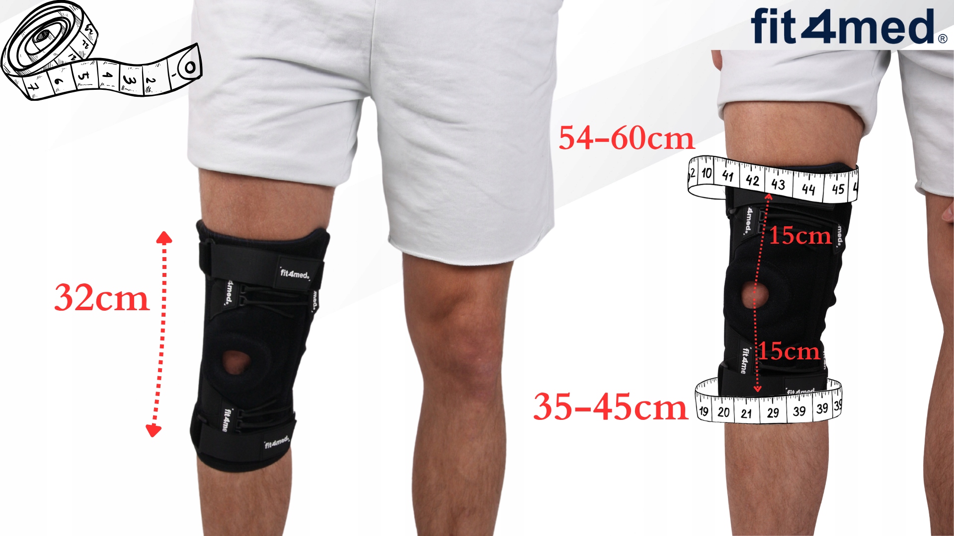 Розмір слід підбирати, вимірявши два обхвати ніг - нижче коліна (приблизно 15 см нижче колінної чашечки) і вище коліна (приблизно 15 см вище колінної чашечки).