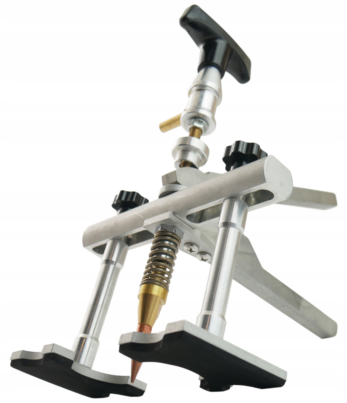 ☑️ Quickpuller - пристрій для ручного, точного точкового видалення вм'ятин автомобільного листового металу. Основи можна регулювати для регулювання діаметра робочого поля та відстані між плечима.