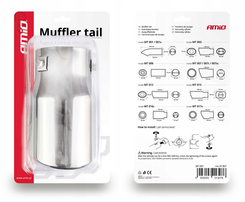 - Монтажний діаметр: 48 - 65 мм (діаметр оригінальної вихлопної труби, на яку можна встановити наконечник)