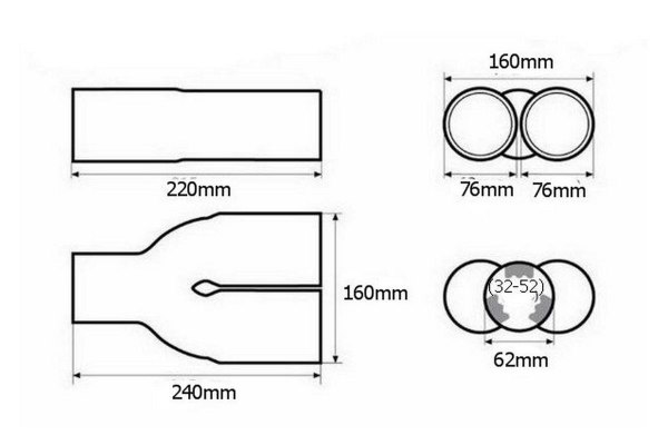 НАКОНЕЧНИК ГЛУШНИКА ВИХЛОПУ, НЕРЖАВІЮЧА СТАЛЬ 2x76 BM SPORT
