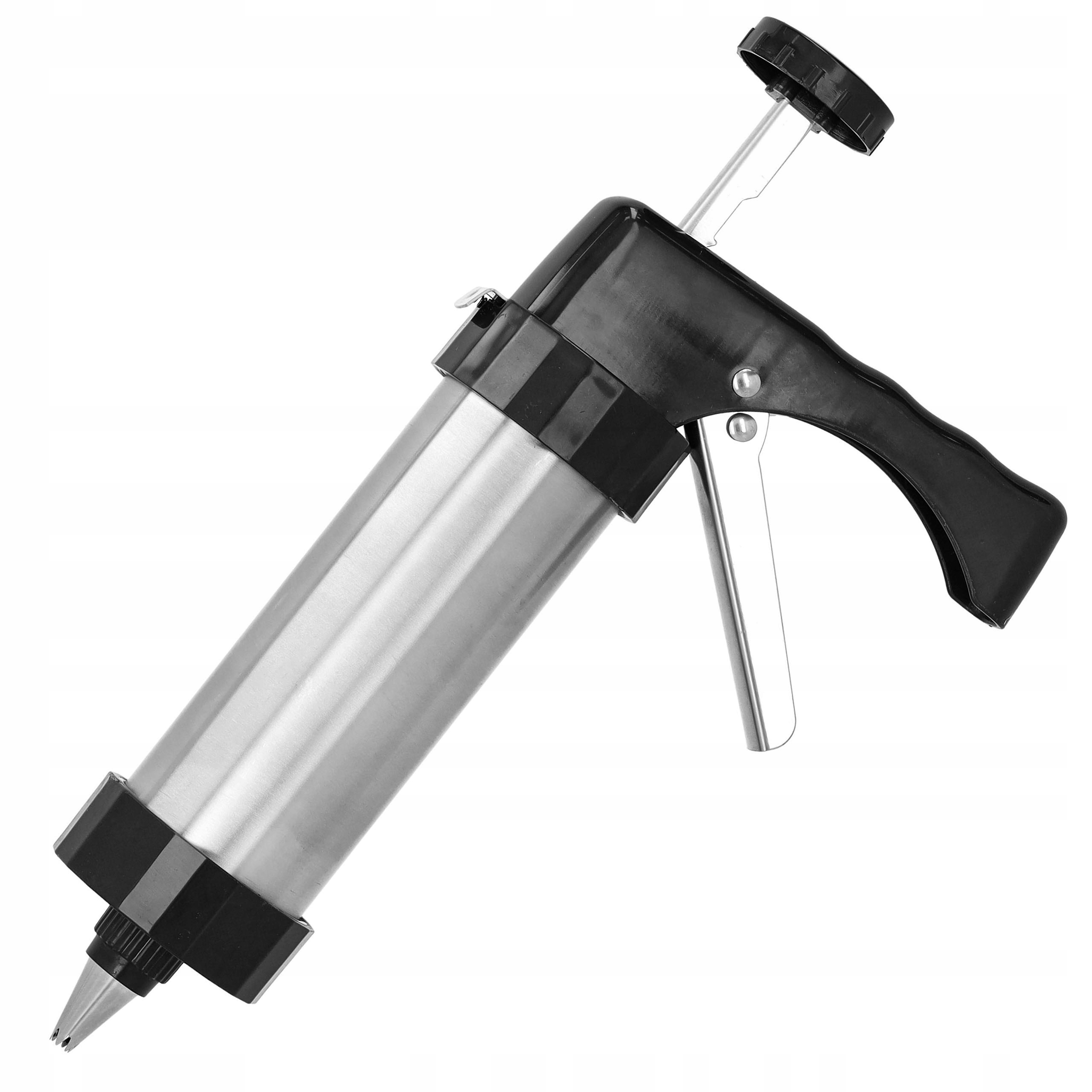 Кондитерський набір із пресом для печива та пакетом для глазурі — ідеальний інструмент для людей, які хочуть легко створювати привабливі прикраси на своїй випічці. У набір входять 17 елементів, серед яких алюмінієвий прес, 8 змінних дисків для печива і 8 декоративних насадок. Весь виготовлений з легких і міцних матеріалів - алюміній і ПП.