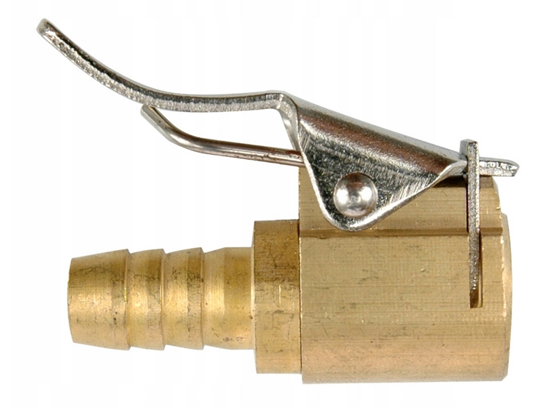 Головка з ніпелем для шланга діаметром 6 мм призначена для накачування коліс автомобіля, мотоцикла, велосипеда тощо. зі спеціальним гачком, який утримує головку в потрібному положенні, і штифтом, який звільняє клапанний клапан. Призначений для накачування коліс автомобіля, мотоцикла, велосипеда тощо. Головку слід приєднати до шланга компресора або наконечника пістолета для накачування.
