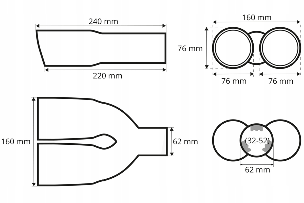 ✅ універсальний: підходить для вихлопних труб із зовнішнім діаметром від 32 до 52 мм