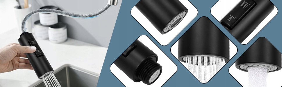 【Багатофункціональний】Його можна встановити на кухонний змішувач, змішувач для раковини та ванної кімнати. Коли ви використовуєте кухонний душ, ви також можете запобігти бризкам води під високим тиском на людей.