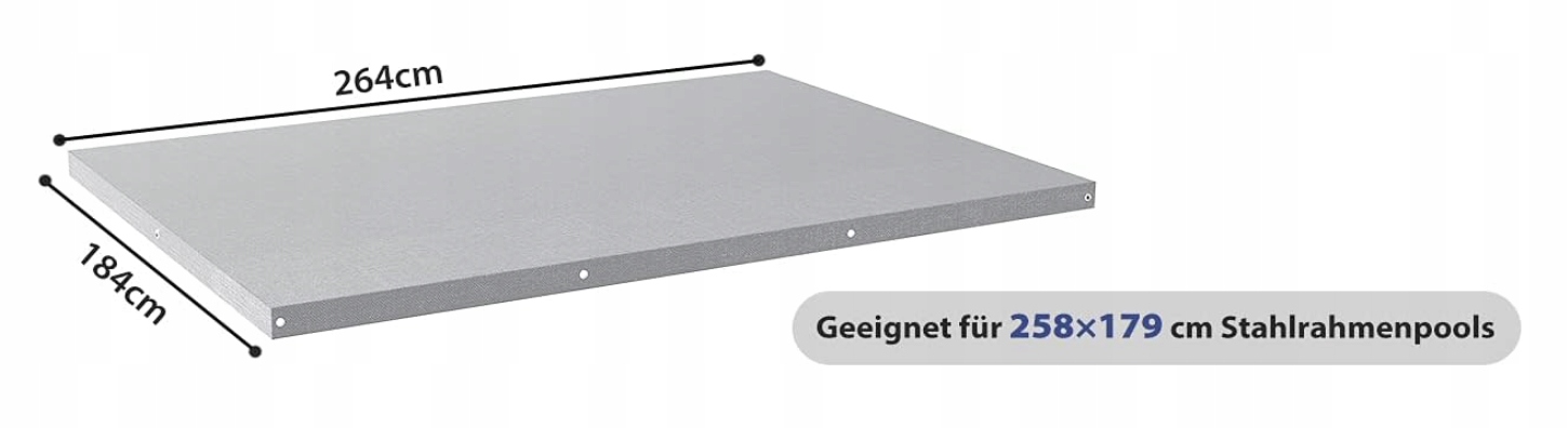 ✅ Розміри: 264 х 184 см. Підходить для плавання з розмірами 258 x 179 см.