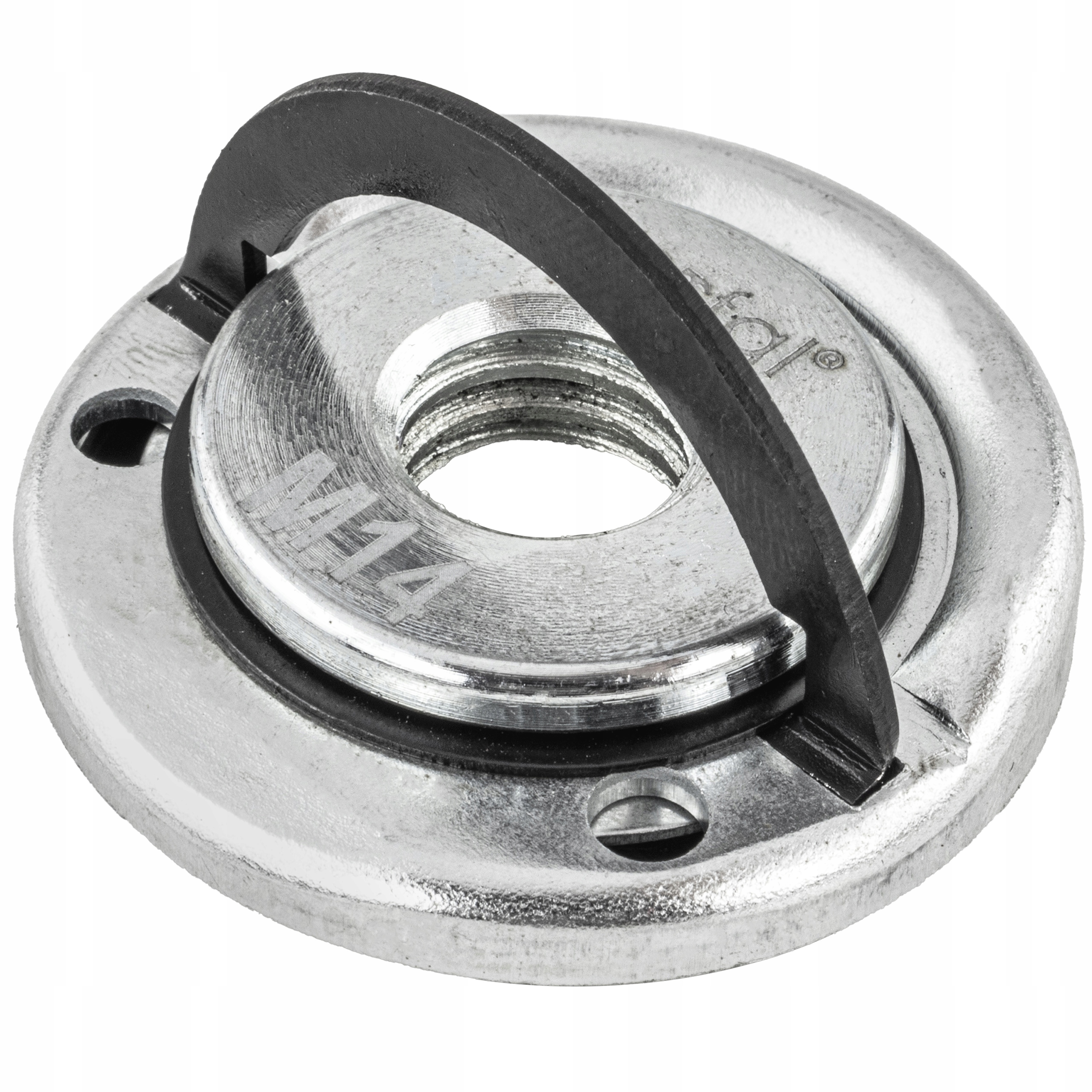 Кріпильний фланець для шліфувальних дисків. Він дозволяє швидко замінити диск без використання додаткових інструментів. Підходить для всіх шліфувальних машин із різьбою M14.