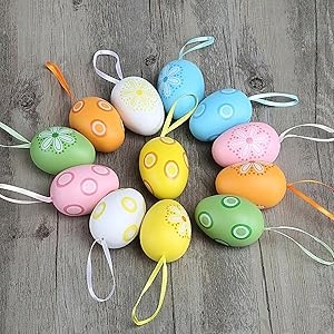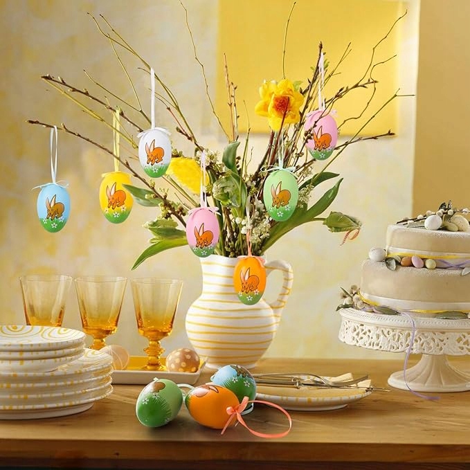 Naler 12 x Пасхальні яйця з струною, барвисті писанки для підвіски 6 кольорів