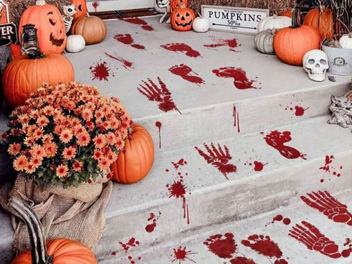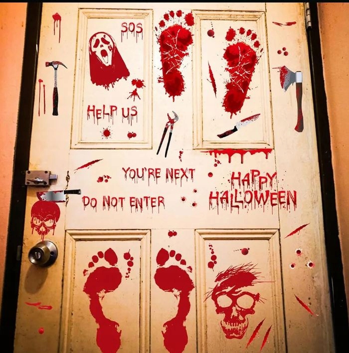 - Реалістичний вигляд: наклейки, що імітують криваві сліди рук, сліди ніг і бризки крові виглядають надзвичайно реалістично, додаючи жаху вашому оточенню.